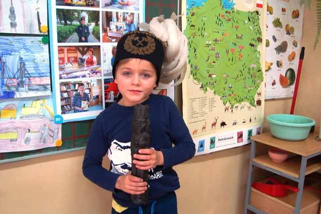 4 grudnia obchodzony jest Dzień Górnika. Z tej okazji w naszej szkole odbyły się w klasach II i IV lekcje poświęcone tematyce górniczej. I tak młodsi uczniowie dowiedzieli się jakie są rodzaje kopalni oglądali zdjęcia rzeźb solnych z kopalni soli w Wieliczce, poznały historię pracy w kopalni. Zaś uczniowie ze starszej klasy wysłuchali legendy śląskiej o Skarbniku, rozwiązywali krzyżówkę z hasłem "Barbórka". Ponadto dowiedziały się jak wygląda herb górniczy, co ozaczają jego elementy i barwy: czerń i zieleń. Na koniec zajęć uczniowie zrobili sobie wspólne zdjęcia z górniczymi symbolami: czapką, kuflem i figurą św. Barbary z węgla kamiennego.