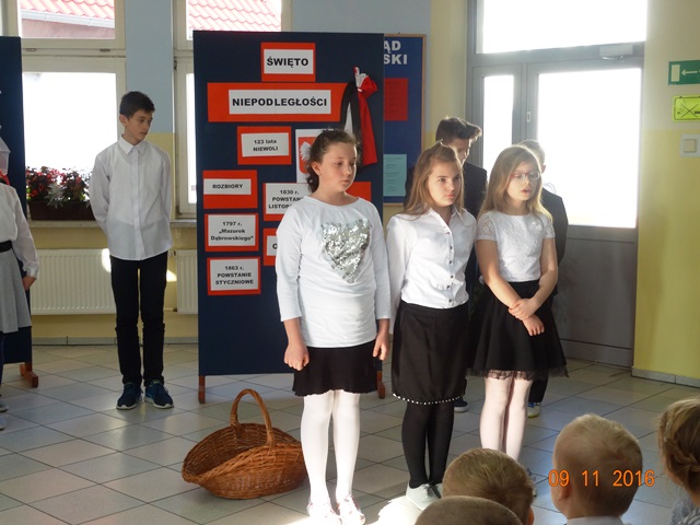 W środę 9 listopada 2016 r. w naszej szkole odbyło się uroczyste spotkanie z okazji Święta Niepodległości. Program artystyczny przygotowali uczniowie kl. IV i VI pod kierunkiem pani Anny Kuczak. W śpiewie pieśni i piosenek patriotycznych wspomagali ich uczniowie kl. IV-VI przygotowywani przez panią Beatę Konarską oraz zespół wokalny „Miodniczanki”, który również gościł na tej uroczystości. Społeczność szkolna świętowała Niepodległość wraz z zaproszonymi gośćmi: radnymi Gminy Żagań: panem Hubertem Kucharskim i panem Leszkiem Ochrymczukiem, sołtysami: Miodnicy - panią Elżbietą Kaletą, Starego Żagania - panią Edytą Gołąb, która jednocześnie jako przewodnicząca reprezentowała Radę Rodziców, proboszczem Parafii Dzietrzychowice ks. Jarosławem Paprockim, pracownikiem Biblioteki z Miodnicy – panią Elżbietą Kucharz oraz przedstawicielami Zarządu Rady Rodziców – skarbnikiem panią Natalią Płachcińską. Wszyscy z zainteresowaniem wysłuchali montażu słowno – muzycznego. Po programie artystycznym zaproszeni goście podziękowali za zaproszenie i przekazali uczniom słodkie upominki, a pan Leszek Ochrymczuk ponadto wręczył paniom z zespołu „Miodniczanki” oraz pani Dyrektor biało – czerwone goździki. Następnie wszyscy goście zostali zaproszeni się na słodki poczęstunek przygotowany przez Zarząd Rady Rodziców. Można było w miłej atmosferze powspominać „stare dzieje”…