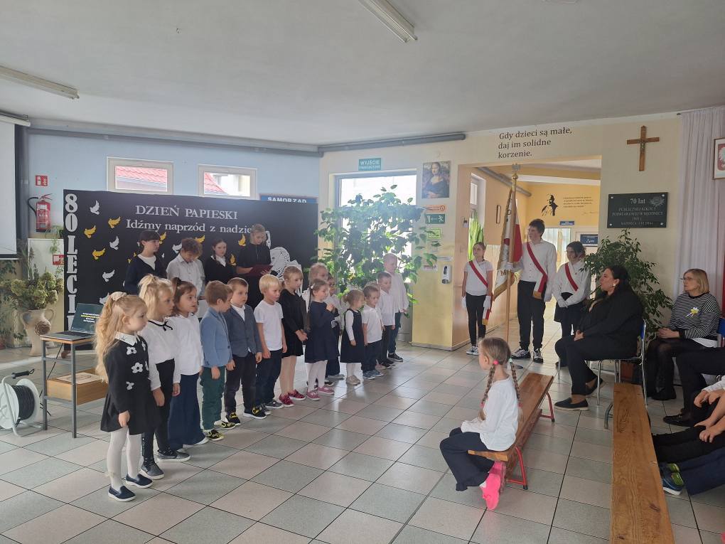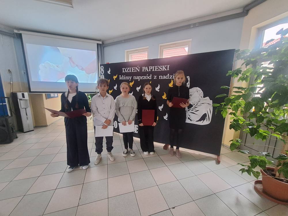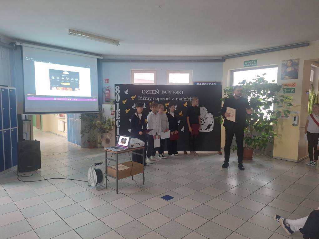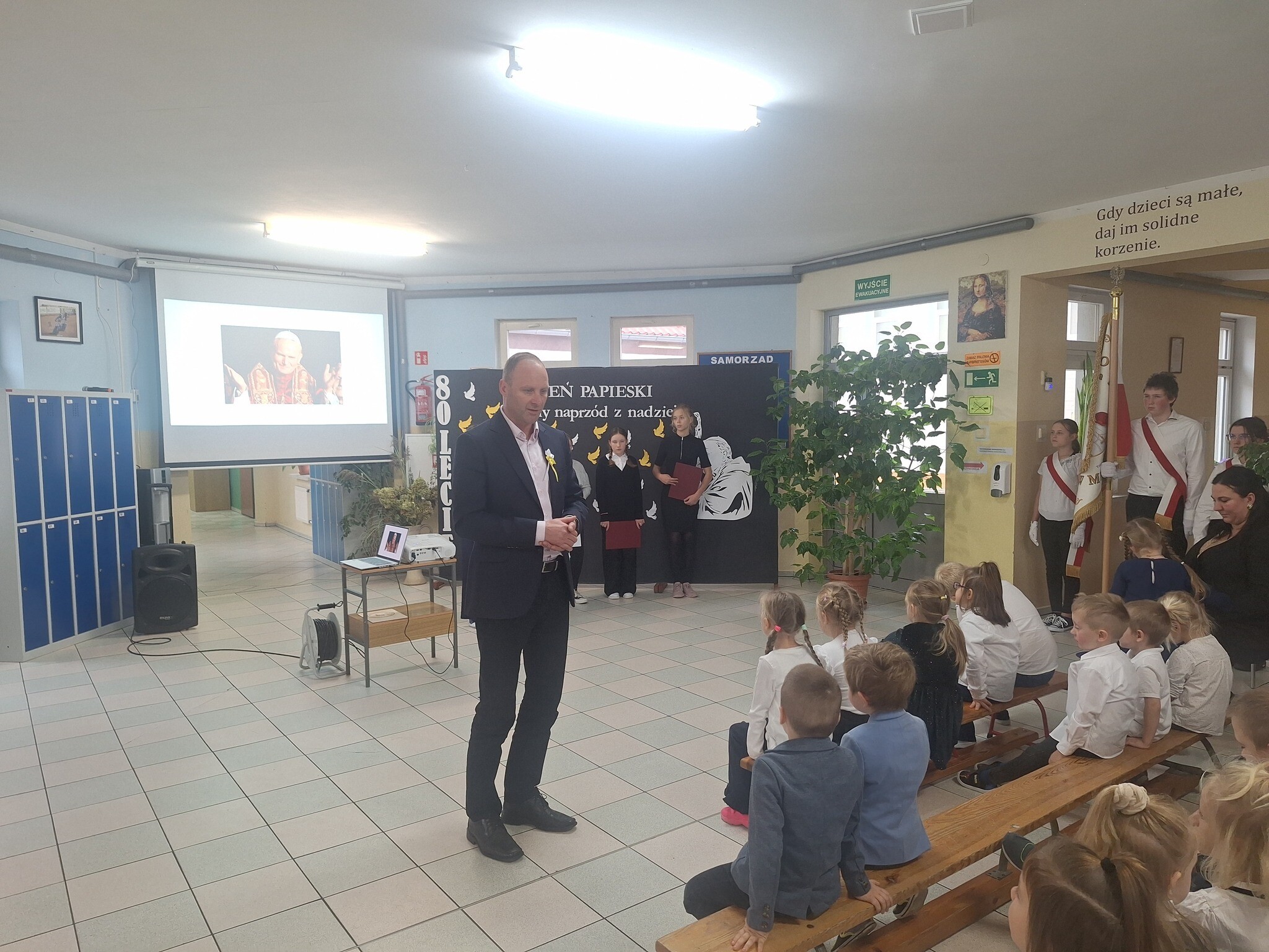 Dziś odbył się uroczysty apel z okazji Dnia Papieskiego oraz święta naszego Patrona – św. Jana Pawła II. To wyjątkowy moment, w którym mogliśmy wspólnie przypomnieć sobie wartości, jakie głosił nasz Wielki Rodak – miłość, dobro, pokój i szacunek do drugiego człowieka