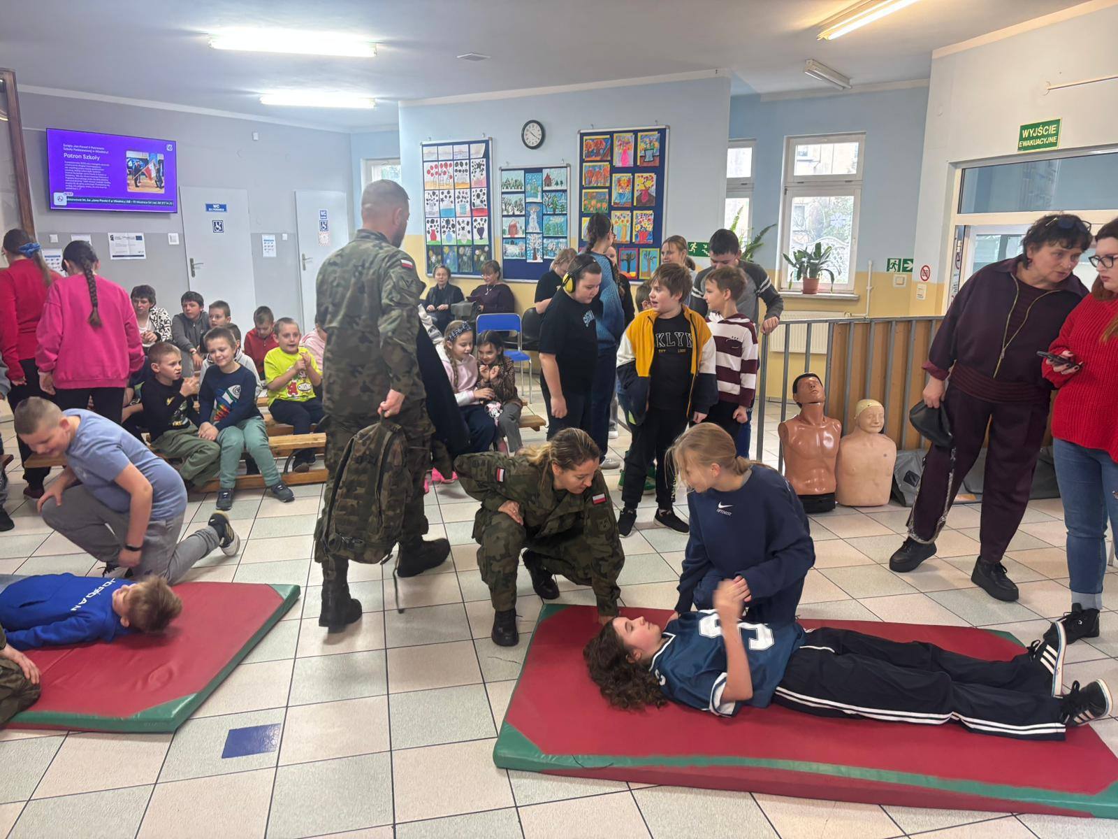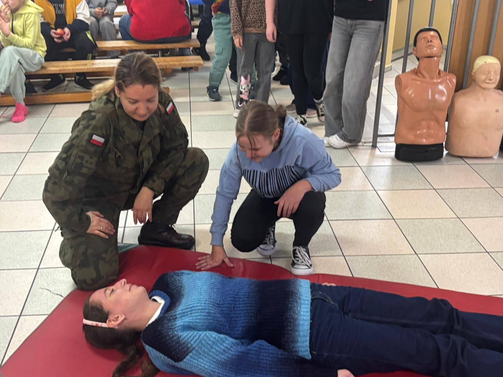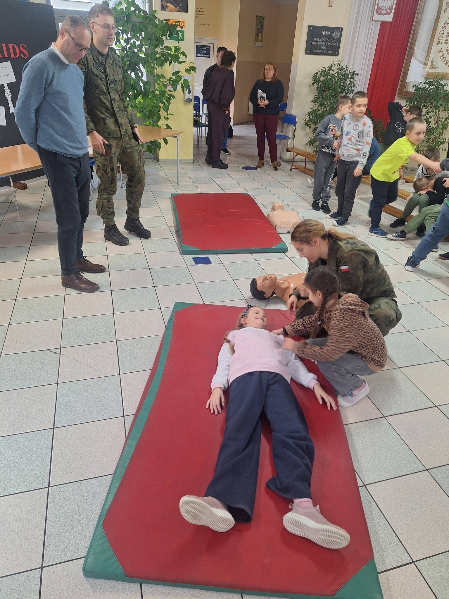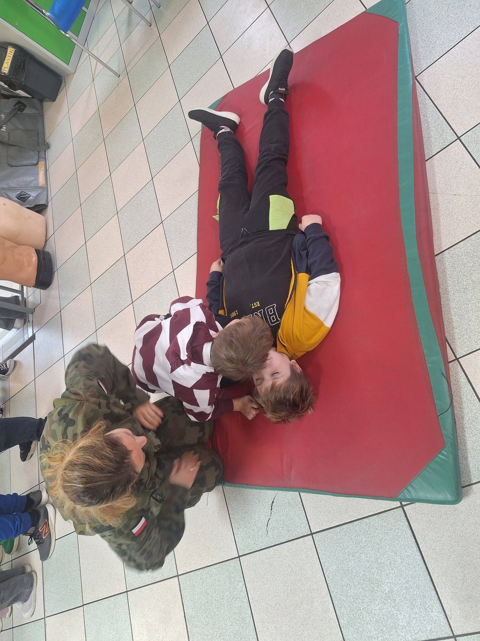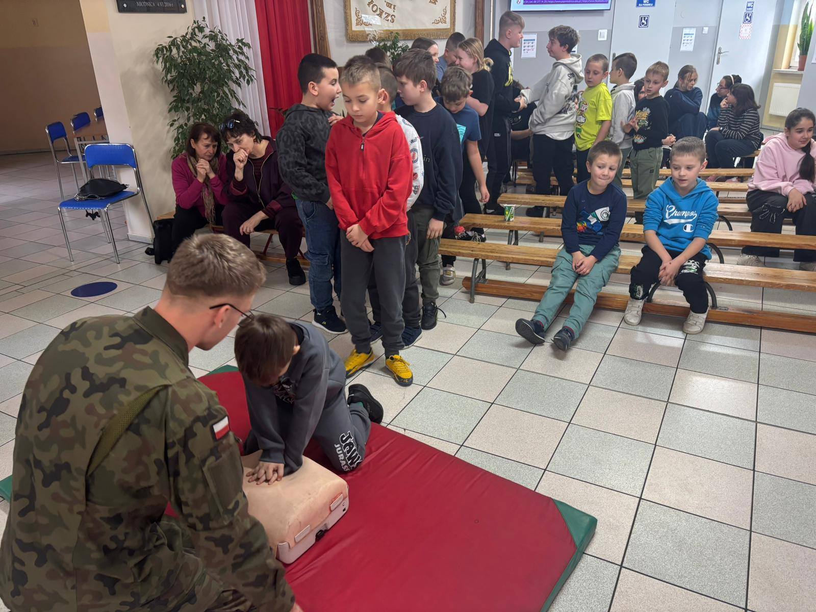Dzieci z ogromnym zaangażowaniem ćwiczyły pierwszą pomoc i aktywnie uczestniczyły w rozmowach, dzięki czemu spotkanie było jednocześnie pouczające i bardzo dynamiczne