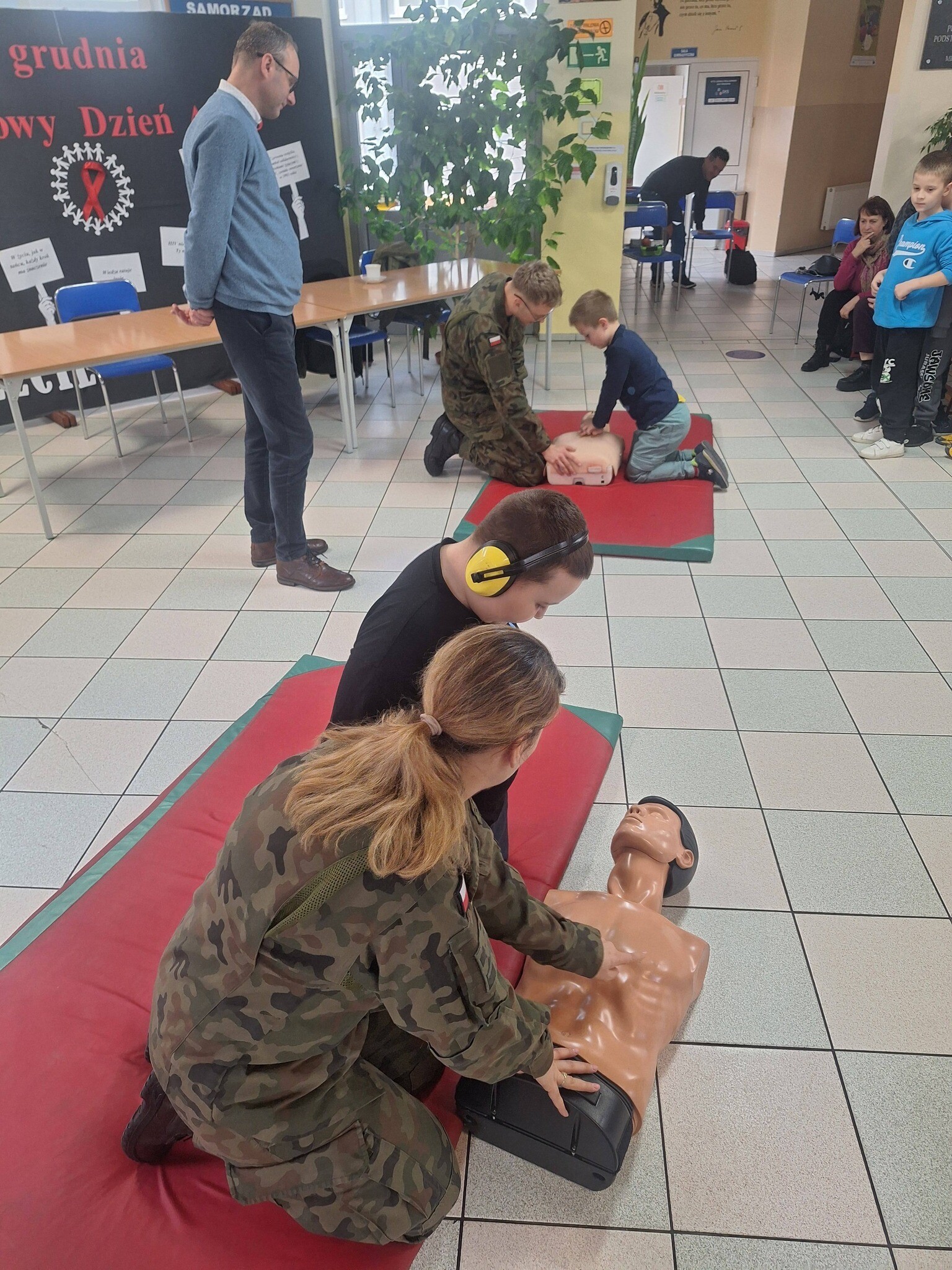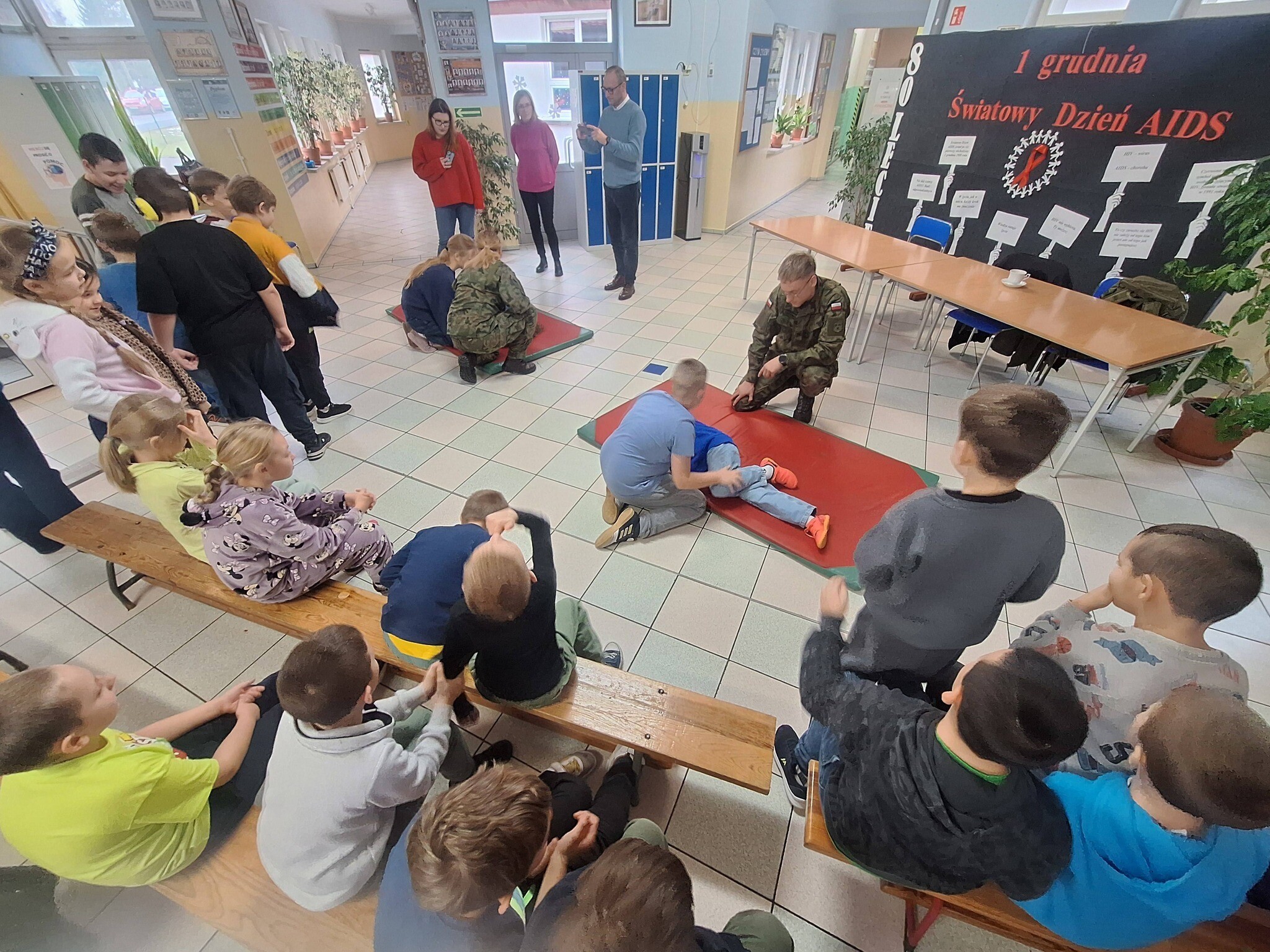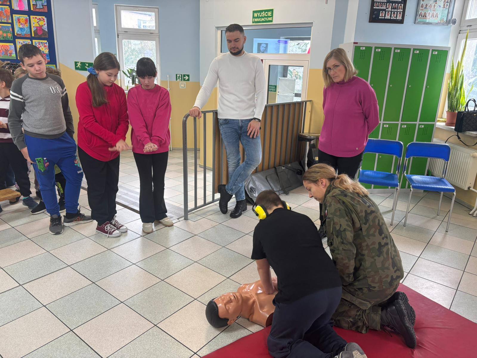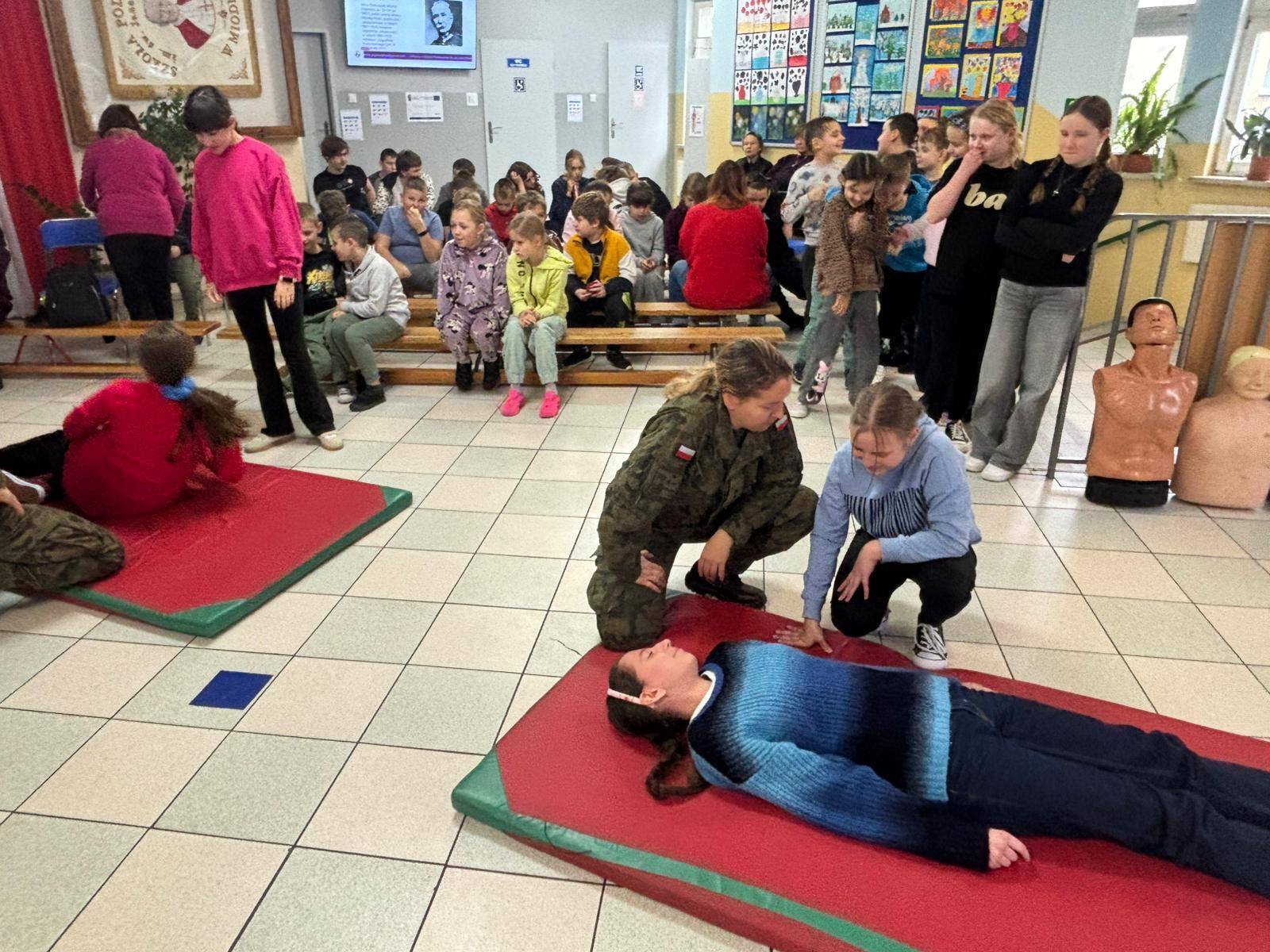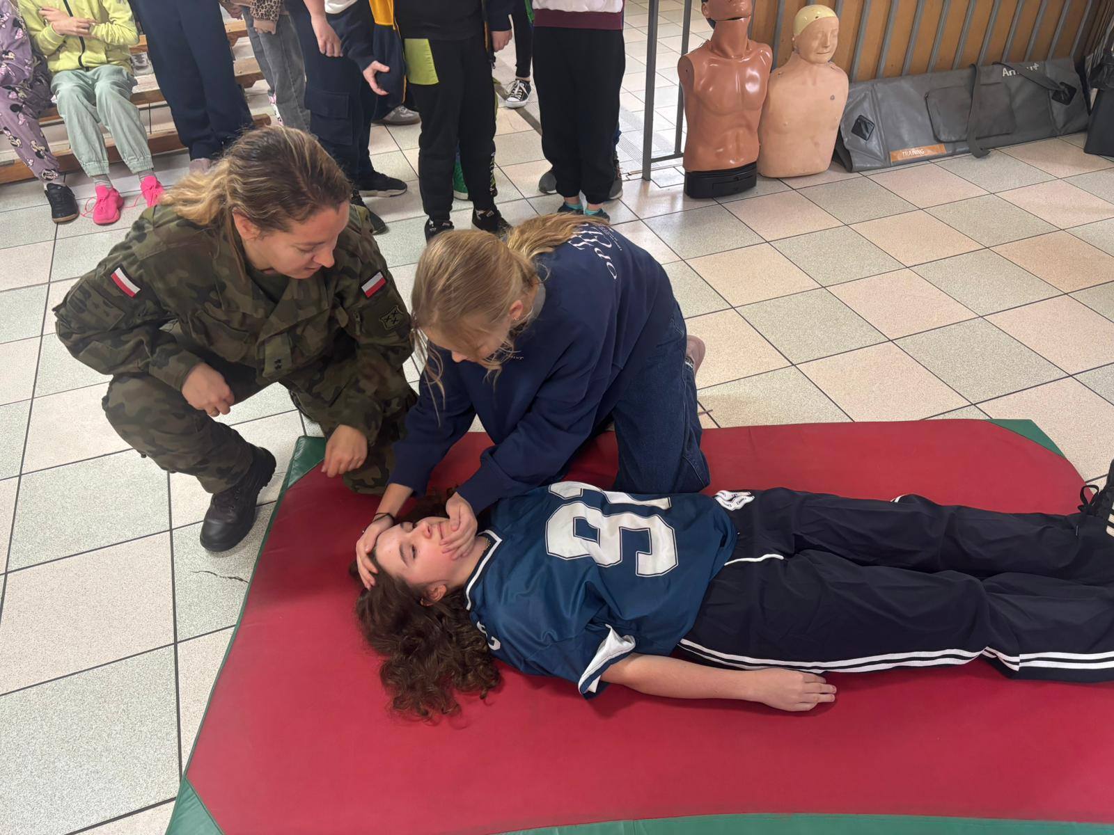Dzieci z ogromnym zaangażowaniem ćwiczyły pierwszą pomoc i aktywnie uczestniczyły w rozmowach, dzięki czemu spotkanie było jednocześnie pouczające i bardzo dynamiczne
