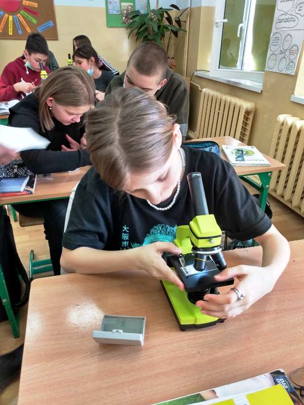 14 marca uczniowie kl. VII uczyli się w jaki sposób przeprowadzamy obserwacje mikroskopowe wykorzystując preparaty stałe jak i wykonane samodzielnie oraz jak wykonać rysunek obserwowanego obiektu.