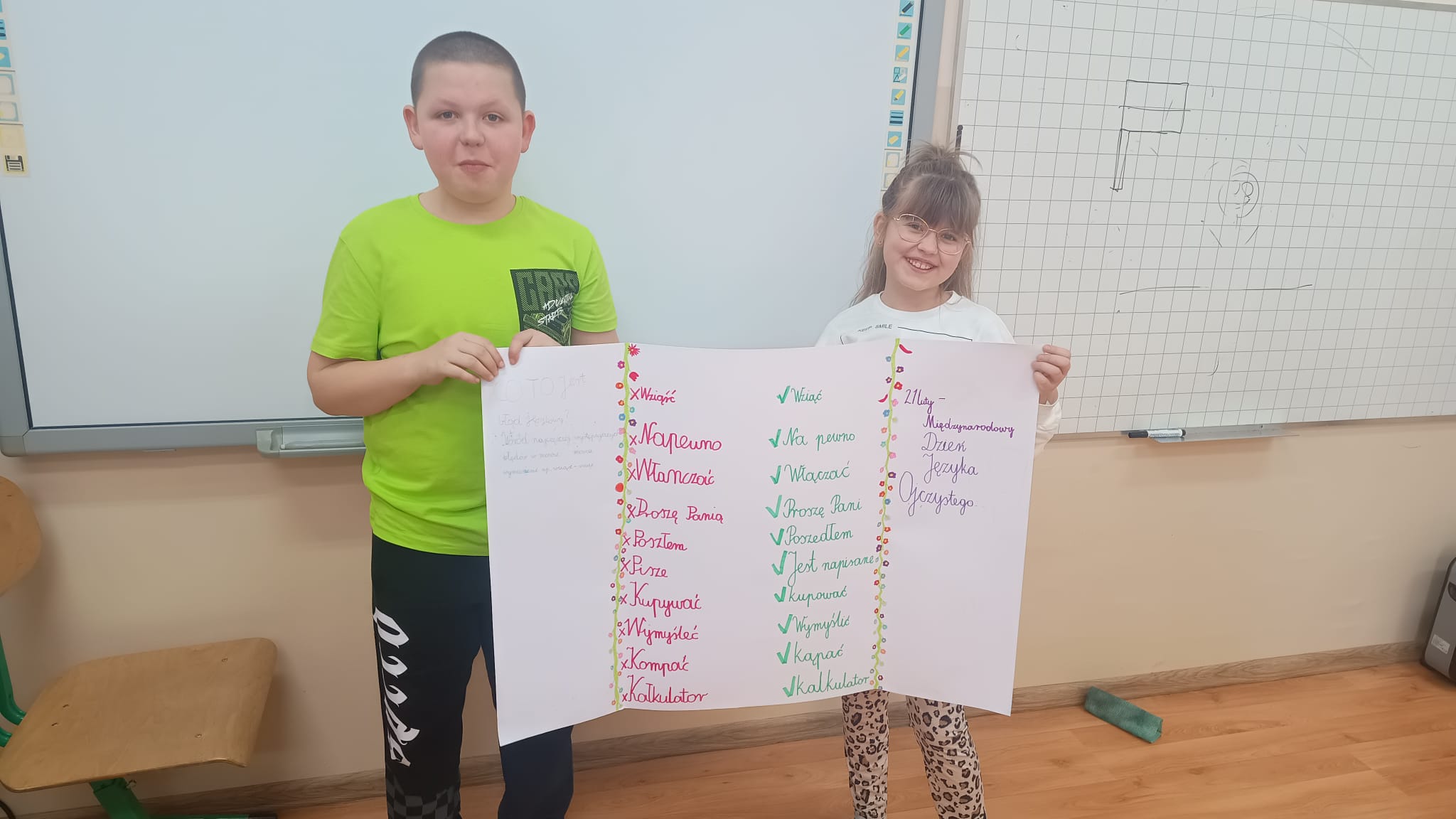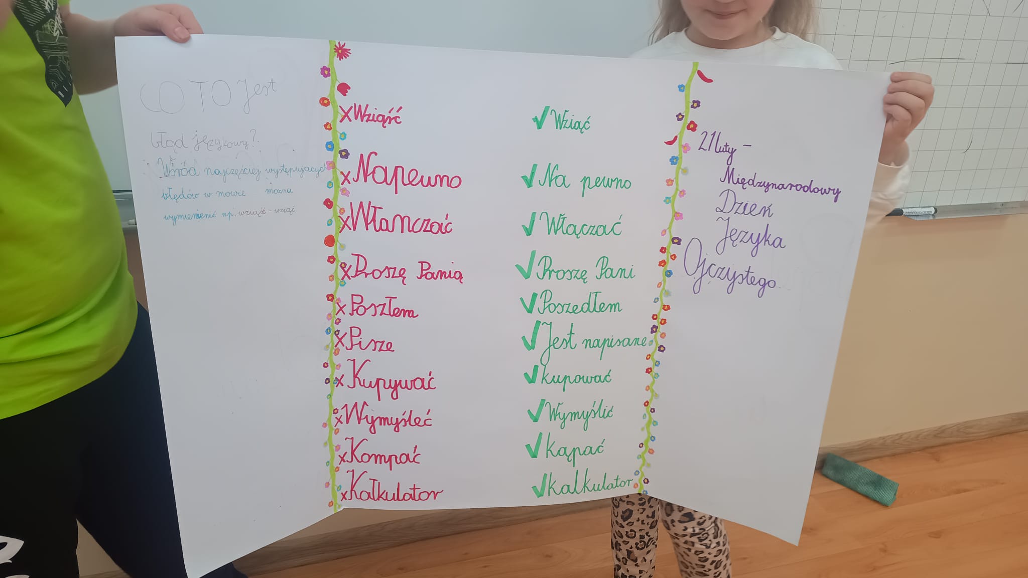 Przedstawione projekty zawierały zarówno plakaty informacyjne, jak i zestaw ćwiczeń utrwalających umiejętności prawidłowego posługiwania się językiem polskim. Gratulujemy