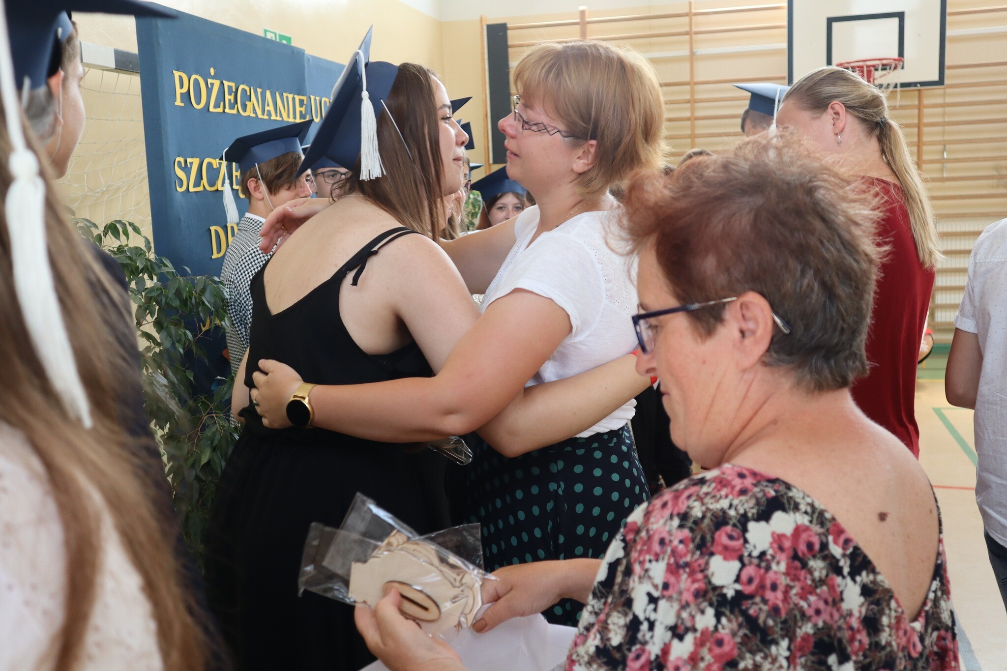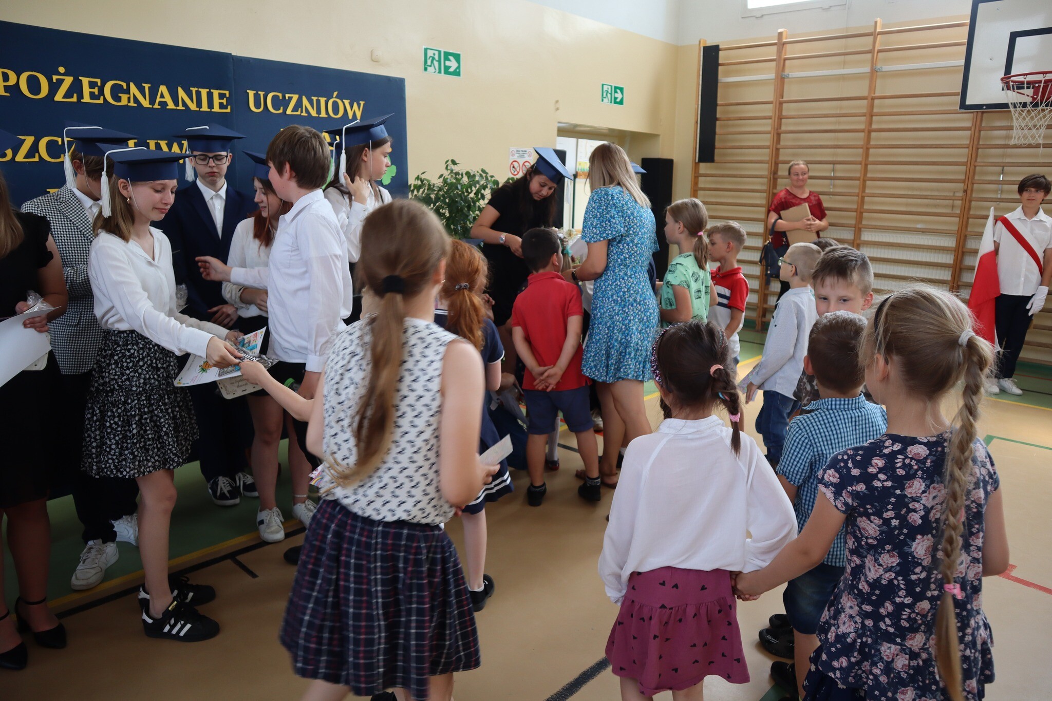 Krzysztof Bugajny oraz reprezentująca rodziców Pani Agata Michalska. Nie zabrakło również rzecz jasna słów podsumowania Pani Doroty Dobias, jako wychowawczyni klasy VIII. Miłą niespodzianką - czego dowodzi poniższa relacja zdjęciowa - było pożegnanie ósmoklasistów przez najmłodszych uczniów naszej placówki. Łzom wzruszenia nie było końca...
