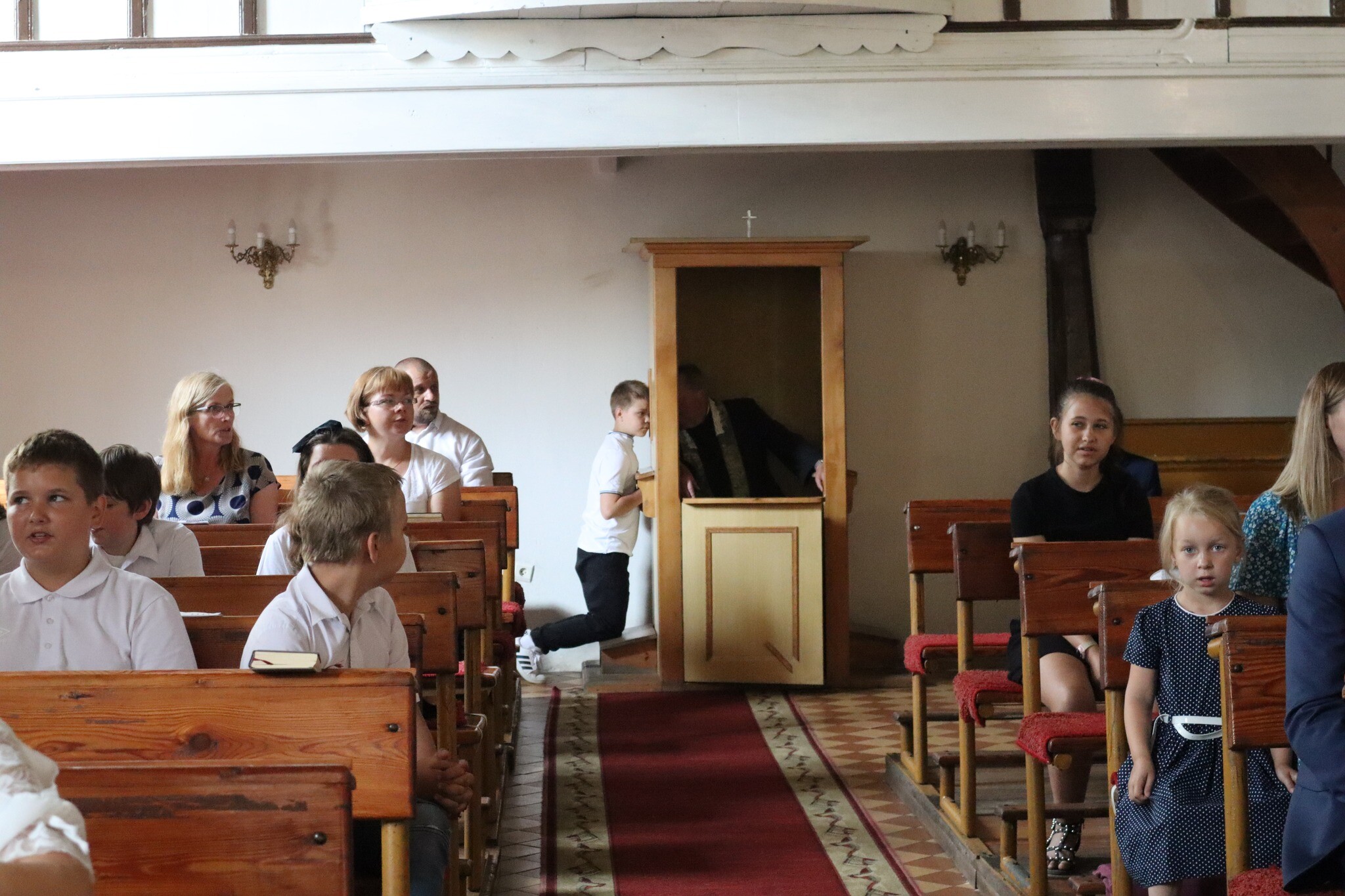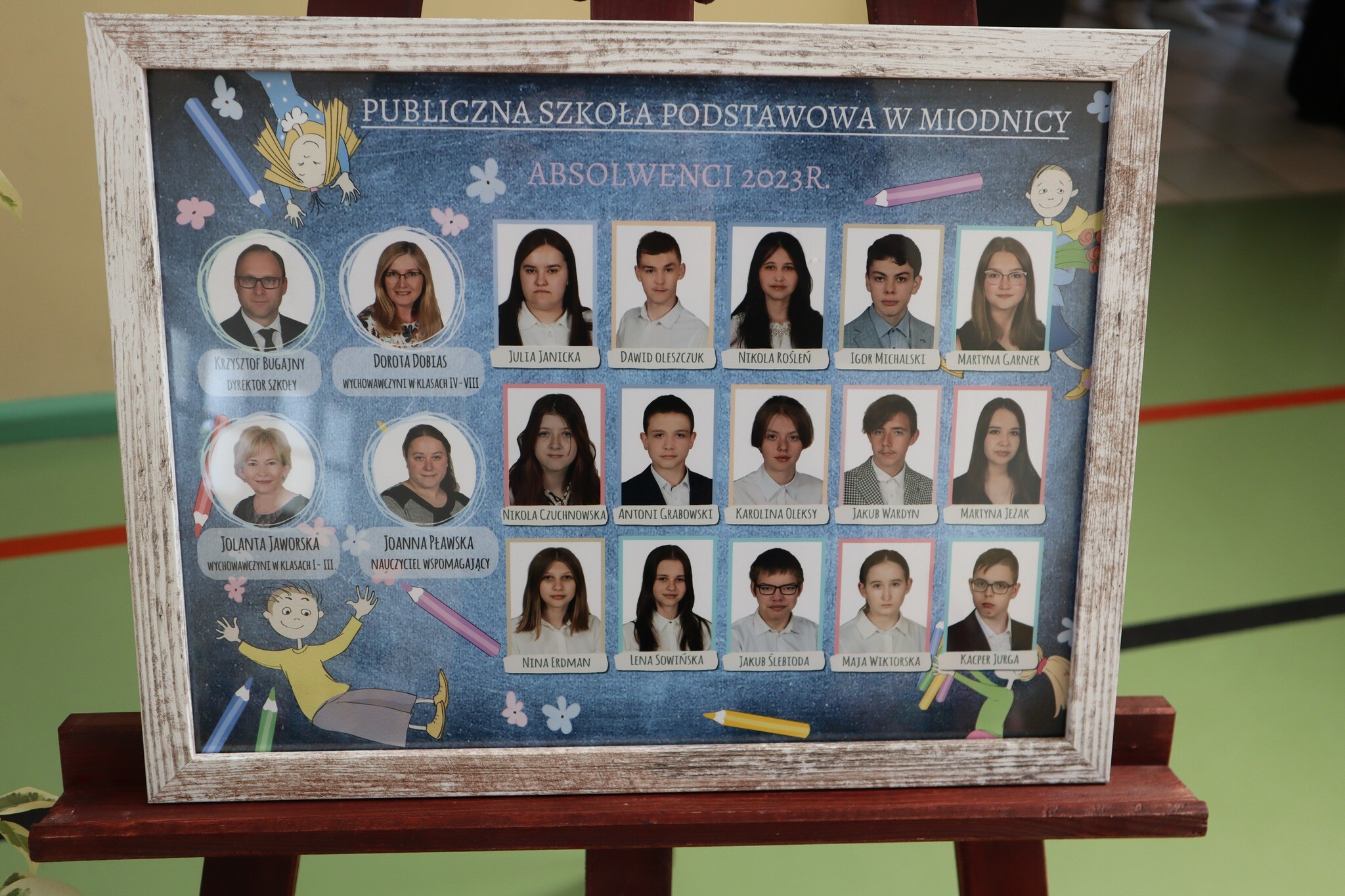Publiczna Szkoła Podstawowa w Miodnicy oficjalnie pożegnała klasa VIII, tj. podopieczni wychowawczyni Pani Doroty Dobias. Uroczystość rozpoczęliśmy uczestnictwem w sakramencie Pokuty i Pojednania oraz we Mszy Świętej, podczas której Ksiądz proboszcz Jarosław Paprocki skierował do nas dobre słowo w kontekście bezpiecznego i mądrego przeżycia nadciągających wakacji.