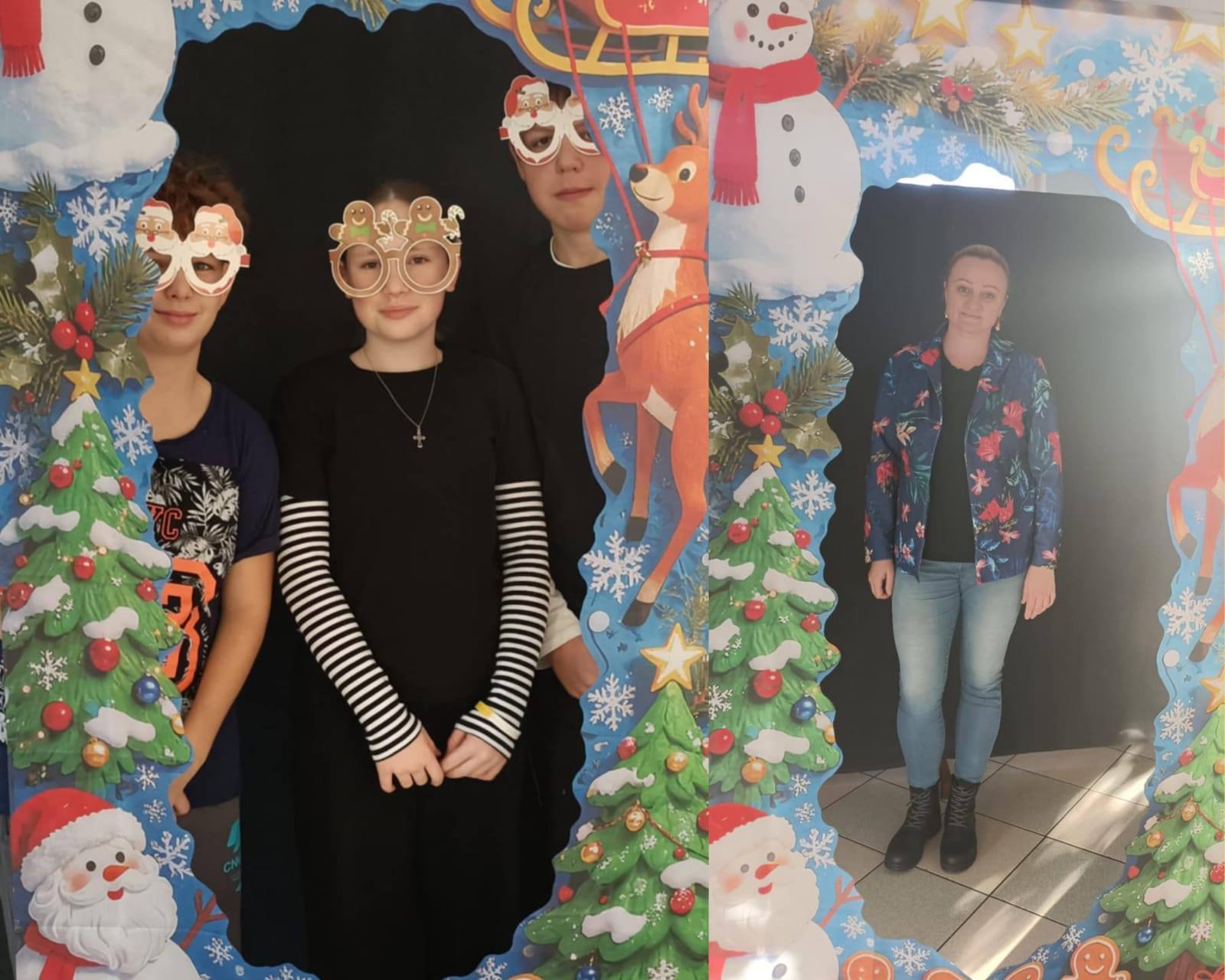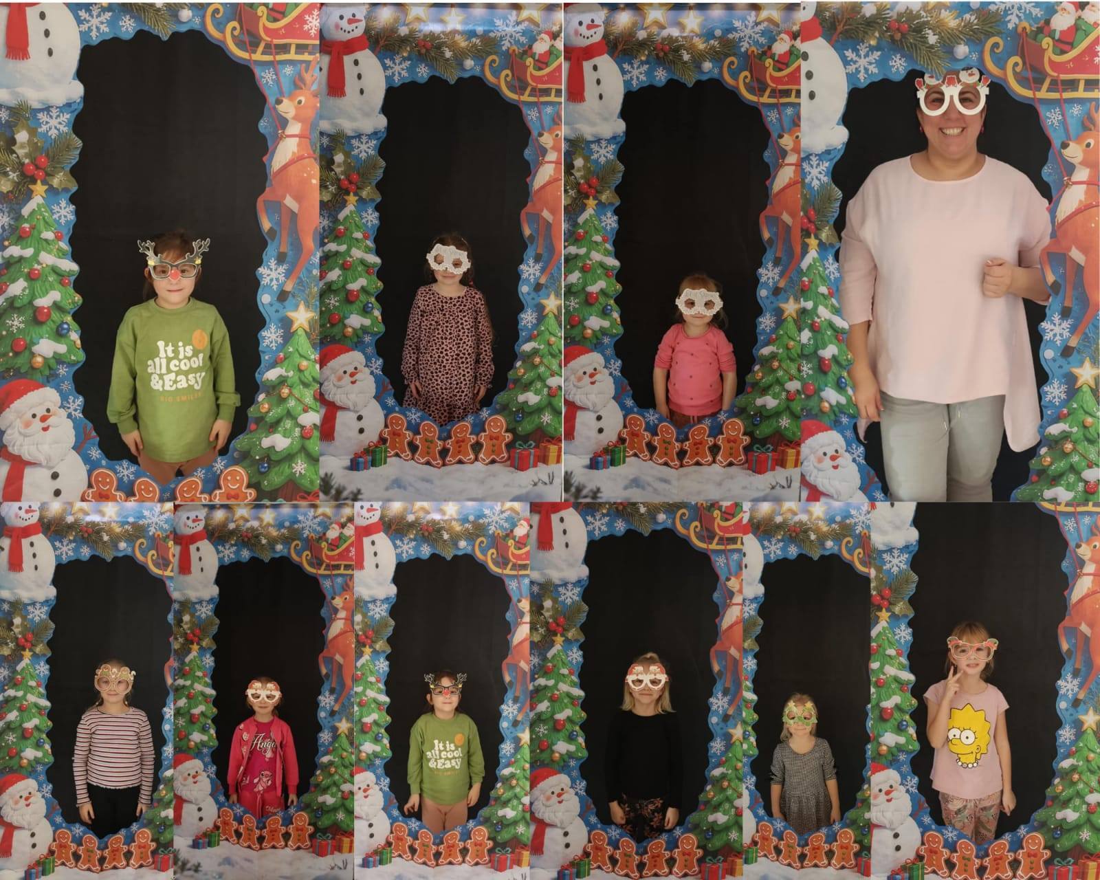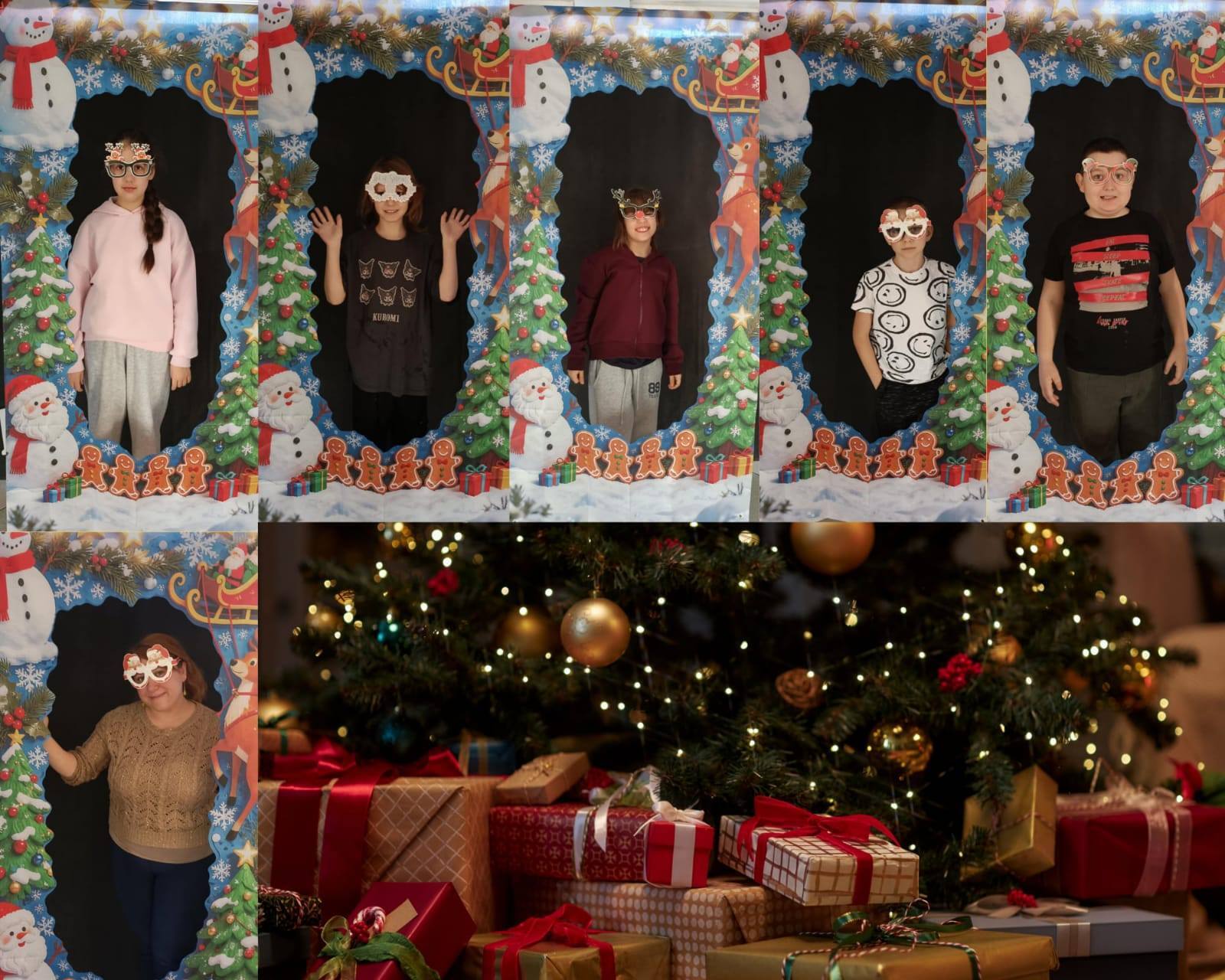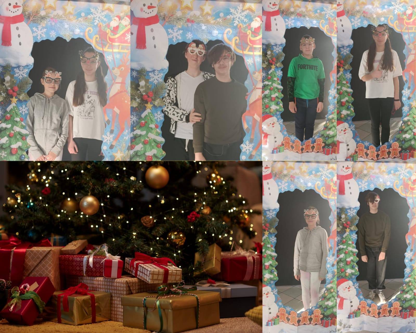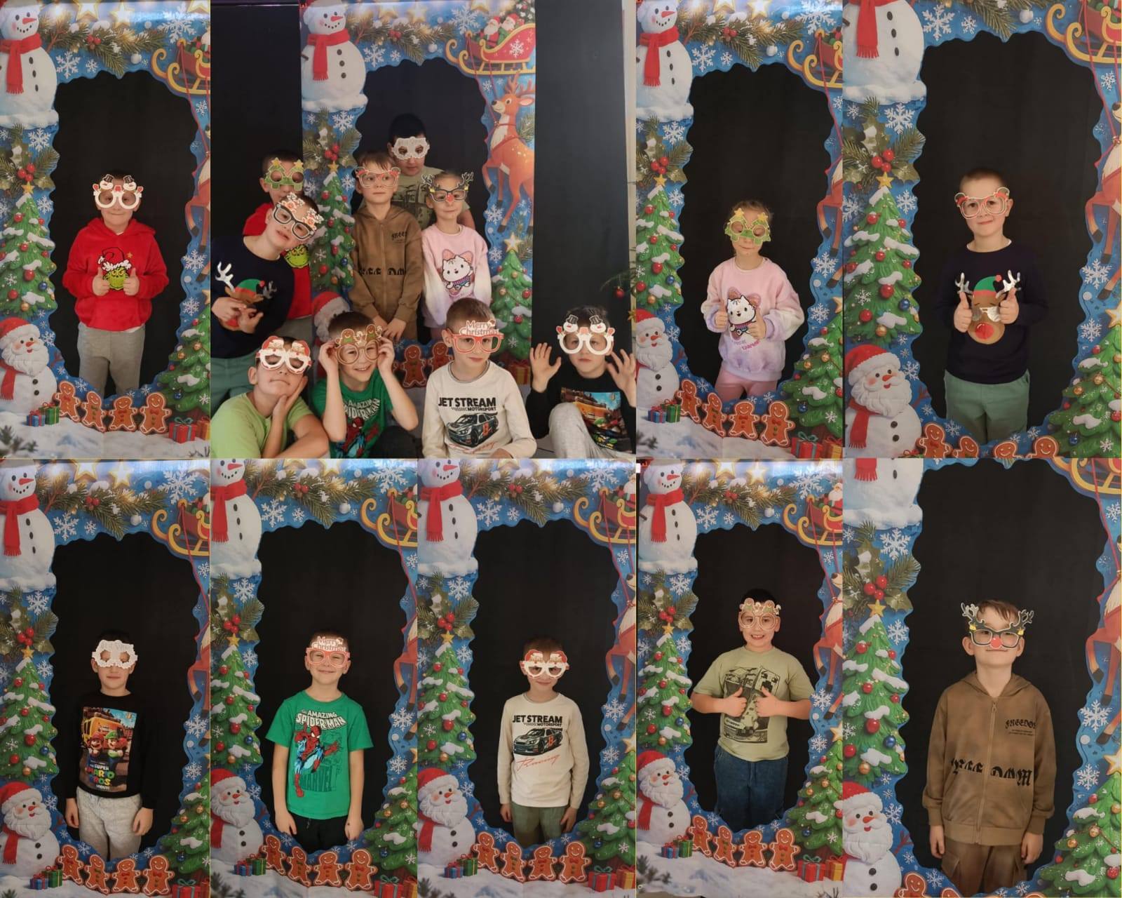 W naszej szkole zapanowała prawdziwie świąteczna atmosfera! Dzieci z wielkim entuzjazmem robiły zdjęcia w świątecznej fotobudce, korzystając z zabawnych rekwizytów i kolorowych dekoracji. Było dużo uśmiechu i spontanicznej radości, a każde zdjęcie stało się piękną pamiątką tego wyjątkowego czasu