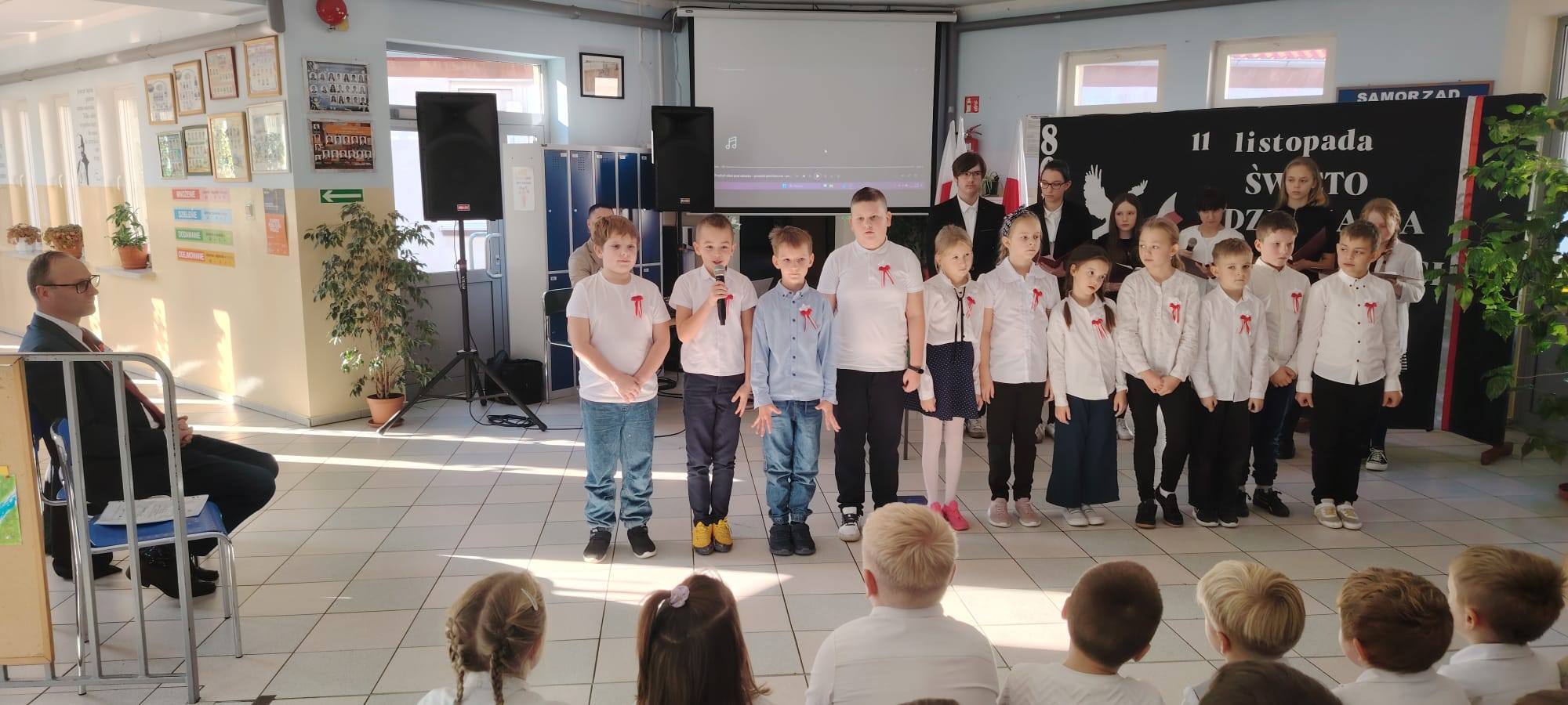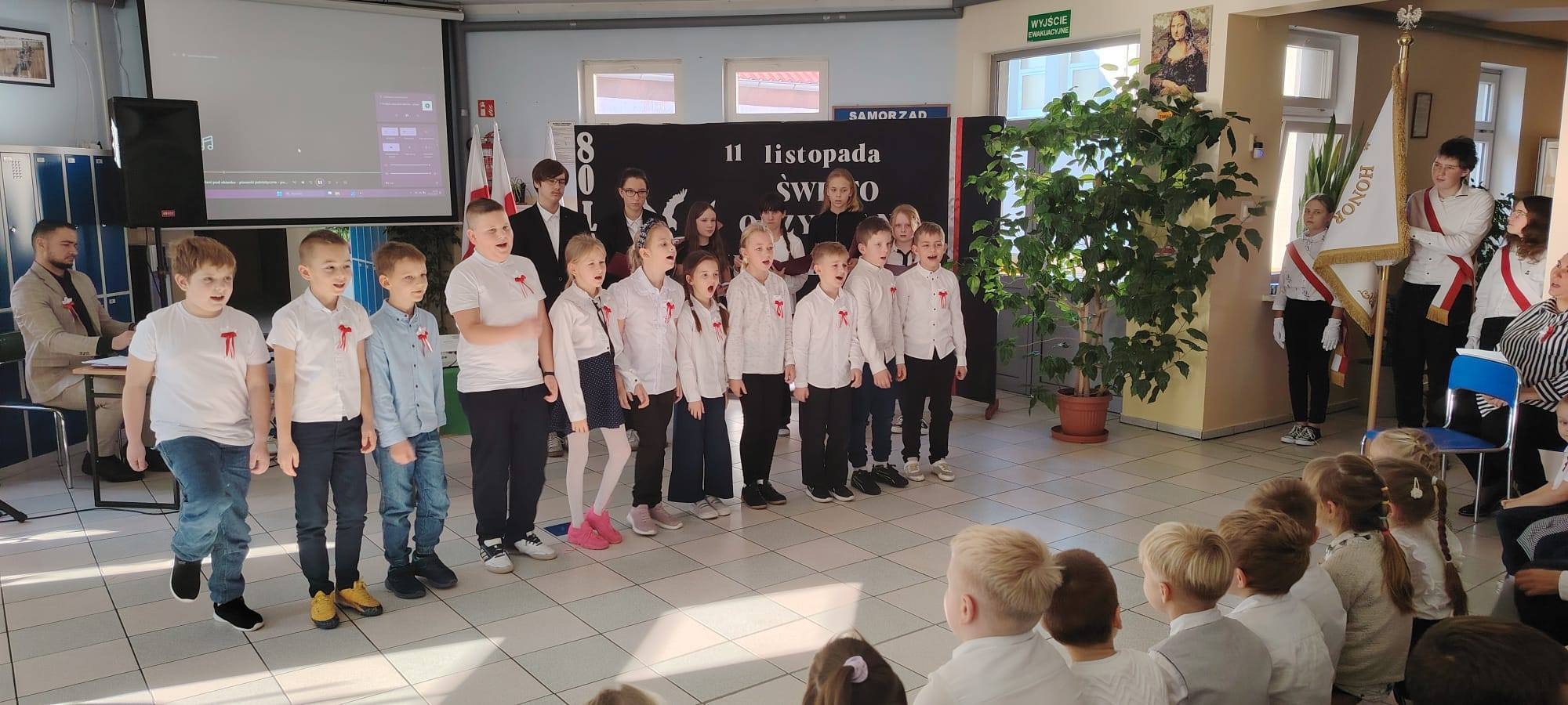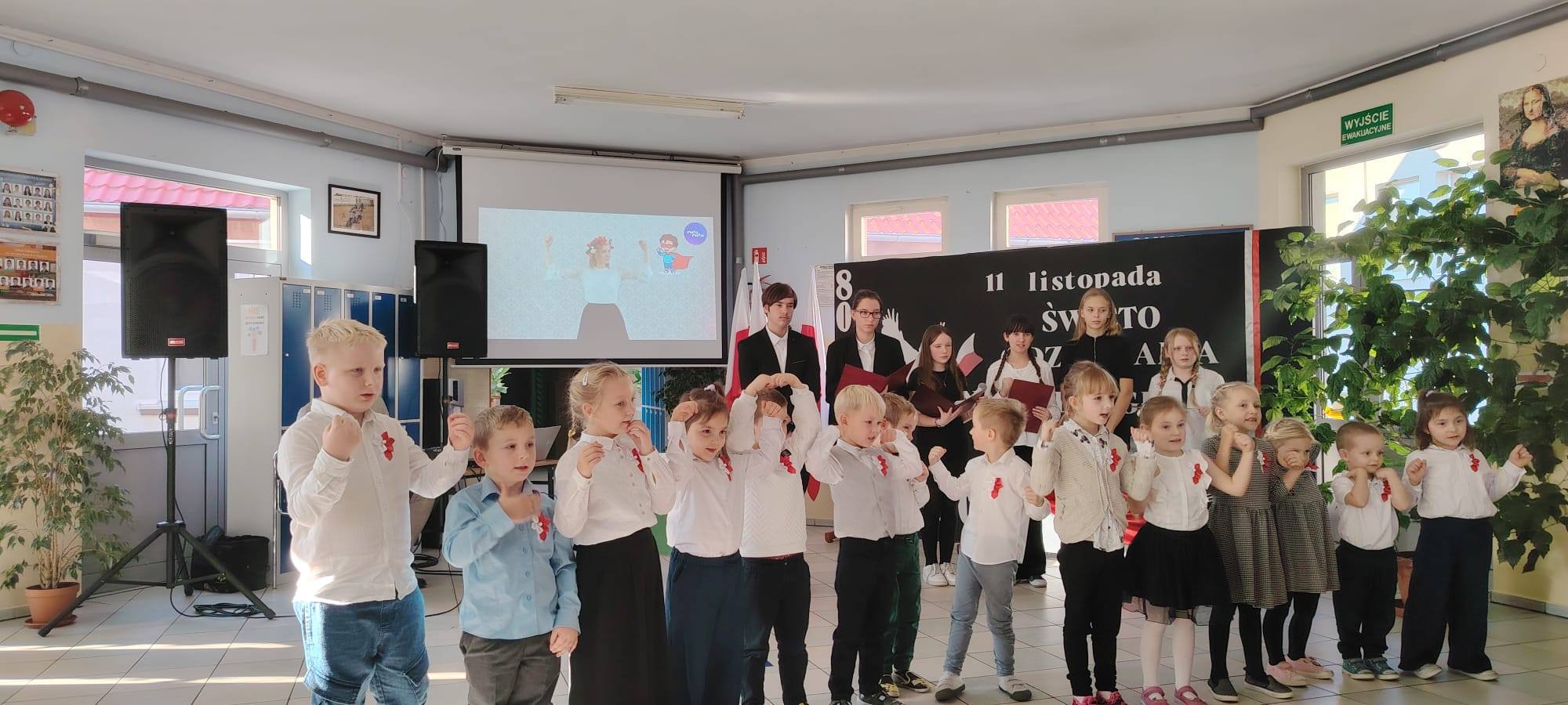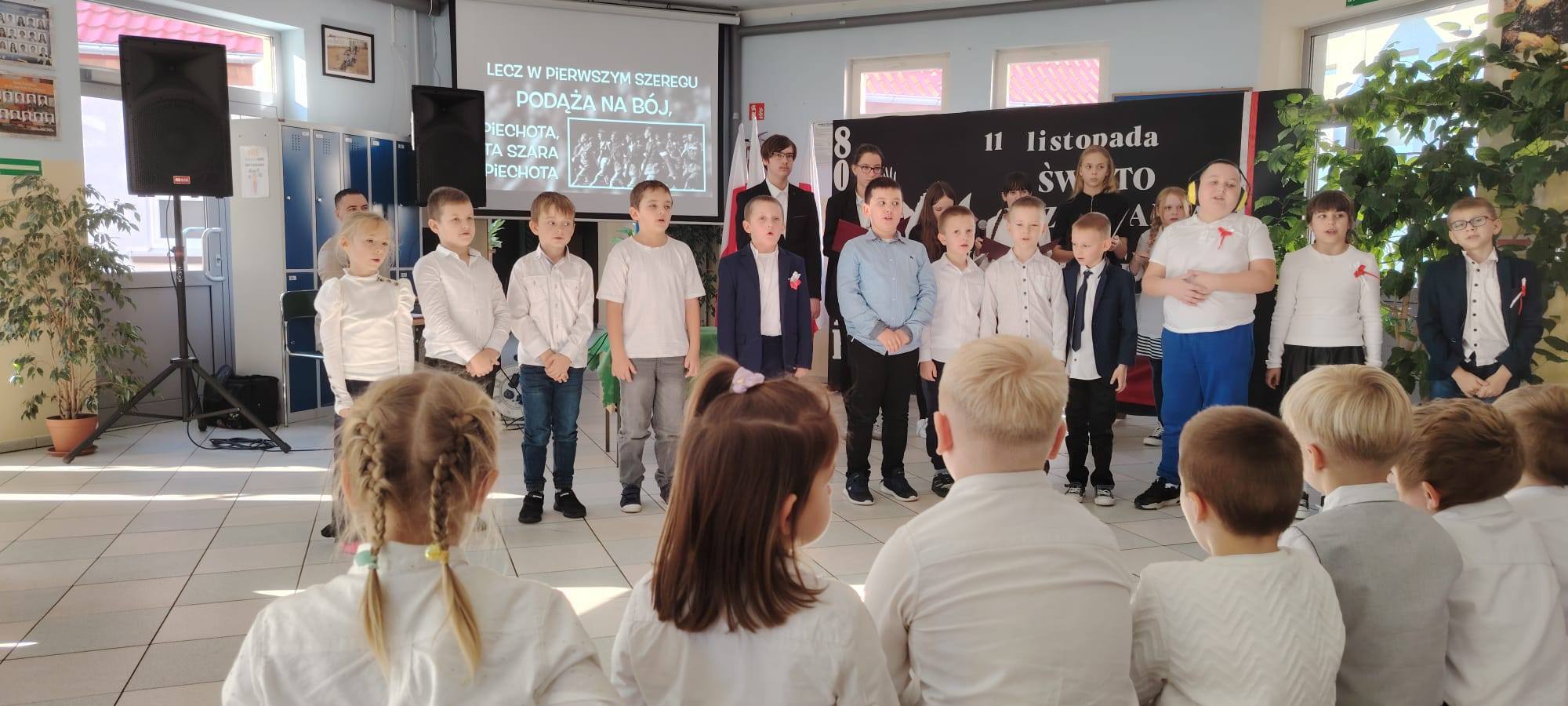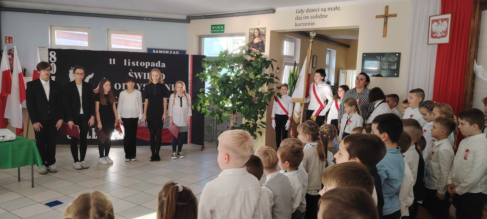 Podczas uroczystości uczniowie w piękny sposób przypomnieli historię drogi Polski do niepodległości. Występy klas II, III i IV oraz Oddziału Przedszkolnego przeplatane były odczytami, wierszami i piosenkami patriotycznymi, które poruszyły serca wszystkich obecnych, dzięki zaangażowaniu uczniów z klas V, VI, VII i VIII