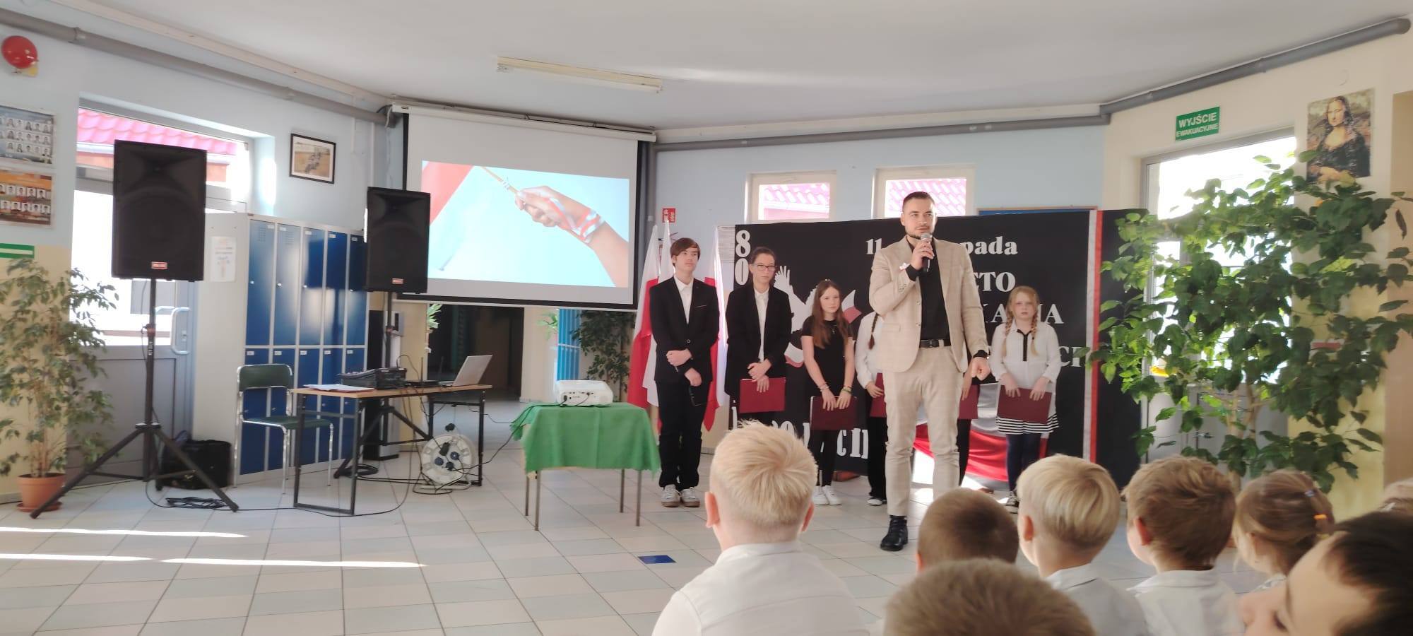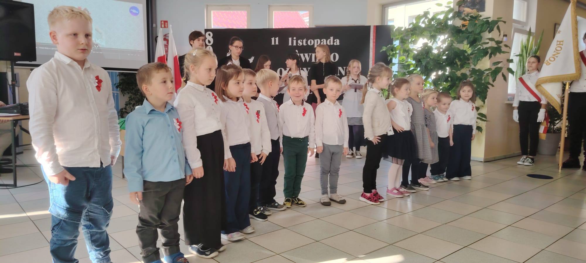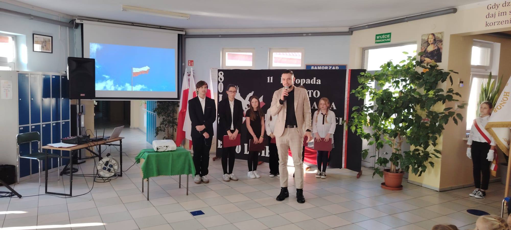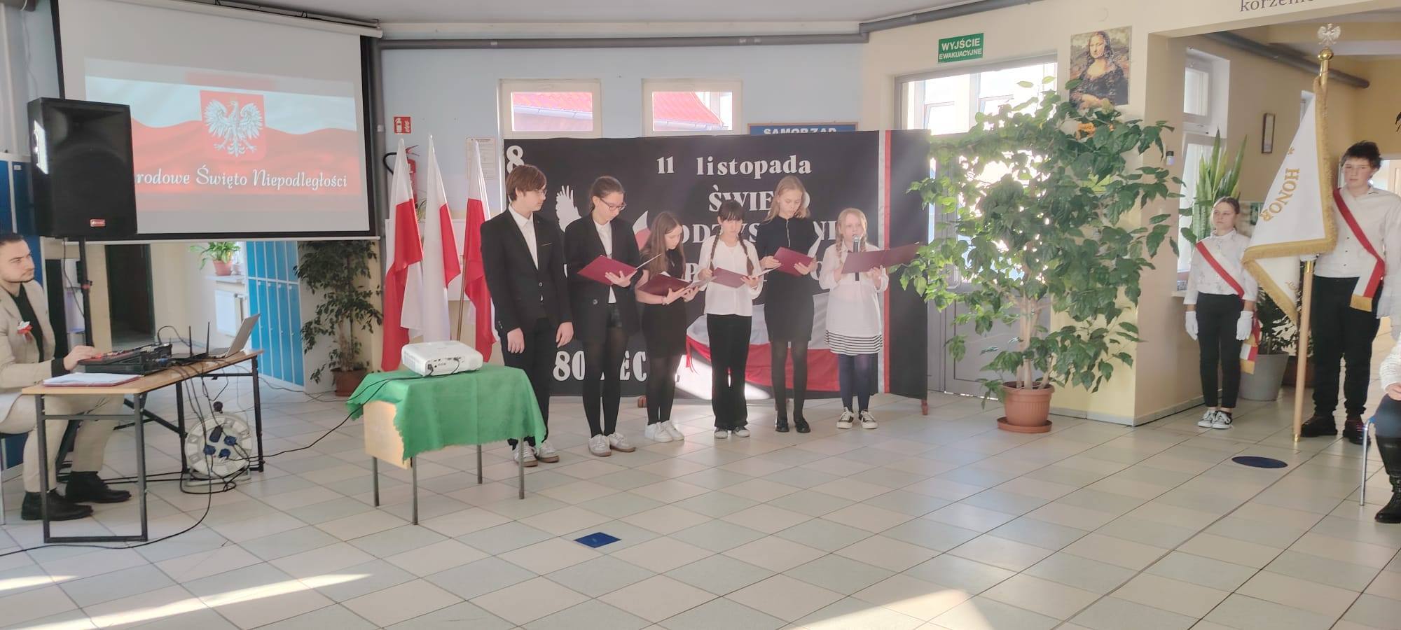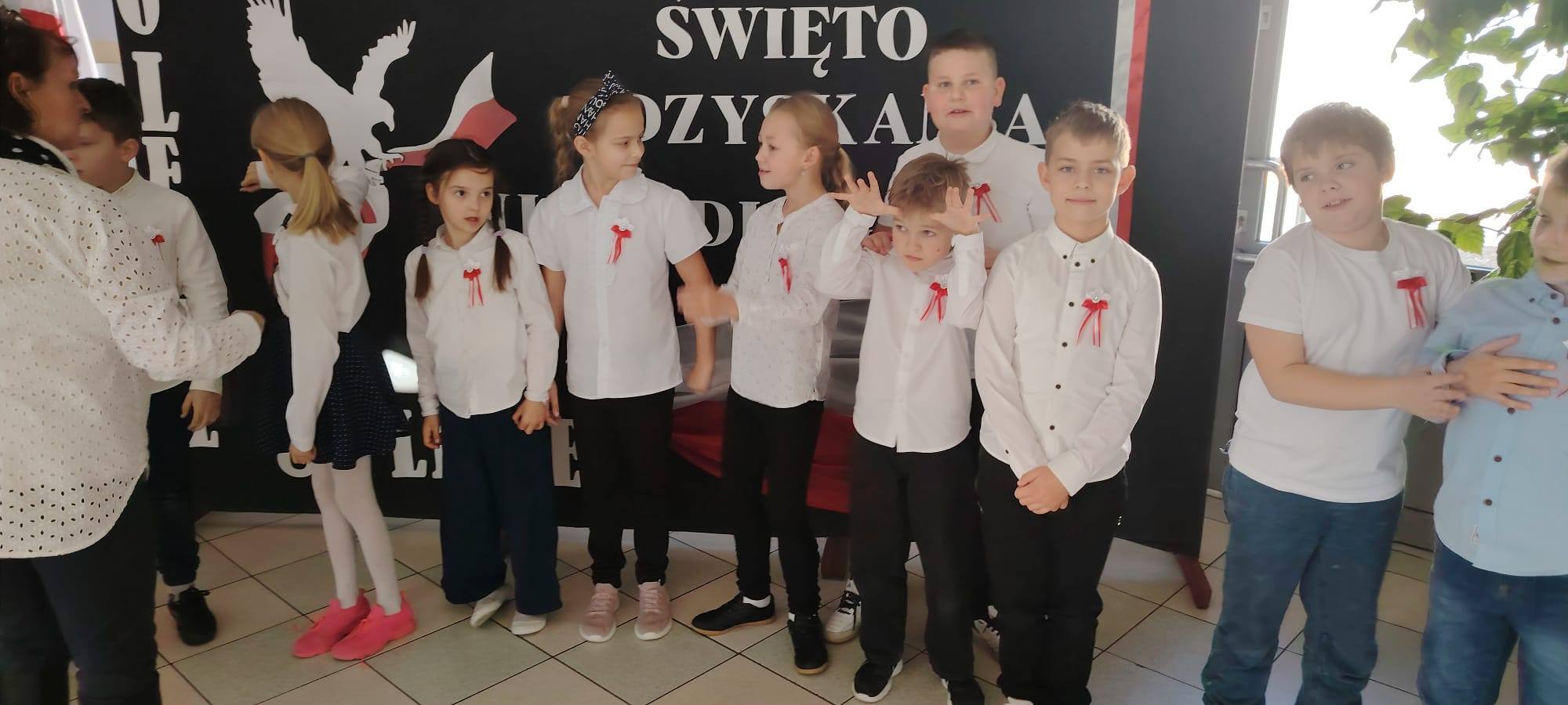Podczas uroczystości uczniowie w piękny sposób przypomnieli historię drogi Polski do niepodległości. Występy klas II, III i IV oraz Oddziału Przedszkolnego przeplatane były odczytami, wierszami i piosenkami patriotycznymi, które poruszyły serca wszystkich obecnych, dzięki zaangażowaniu uczniów z klas V, VI, VII i VIII