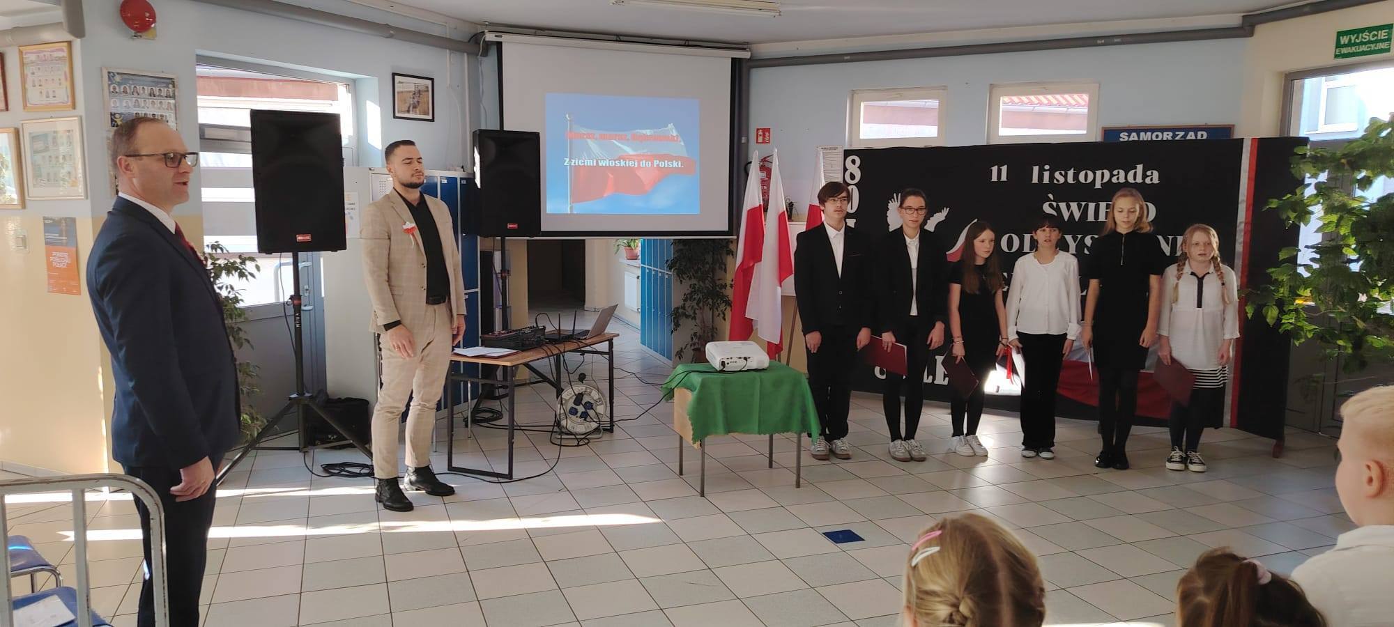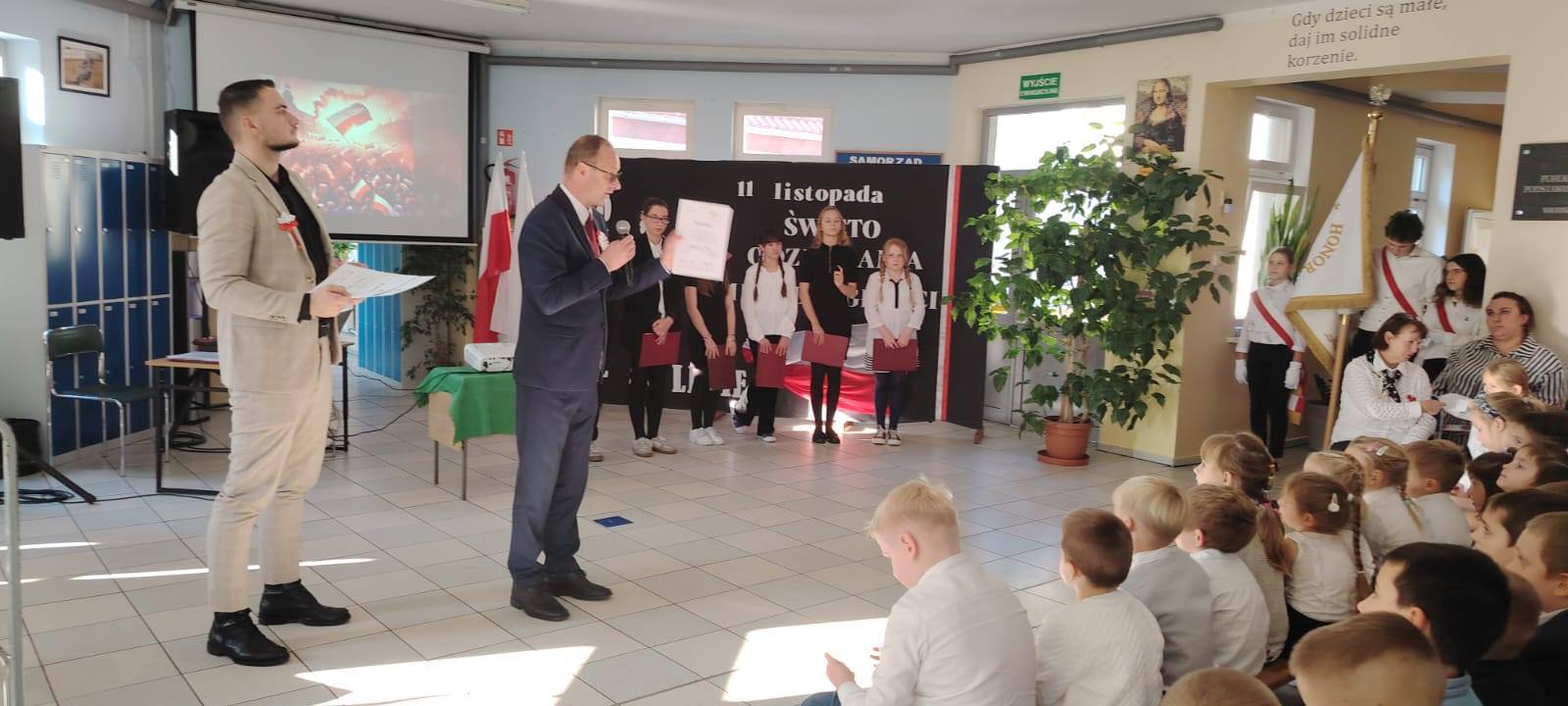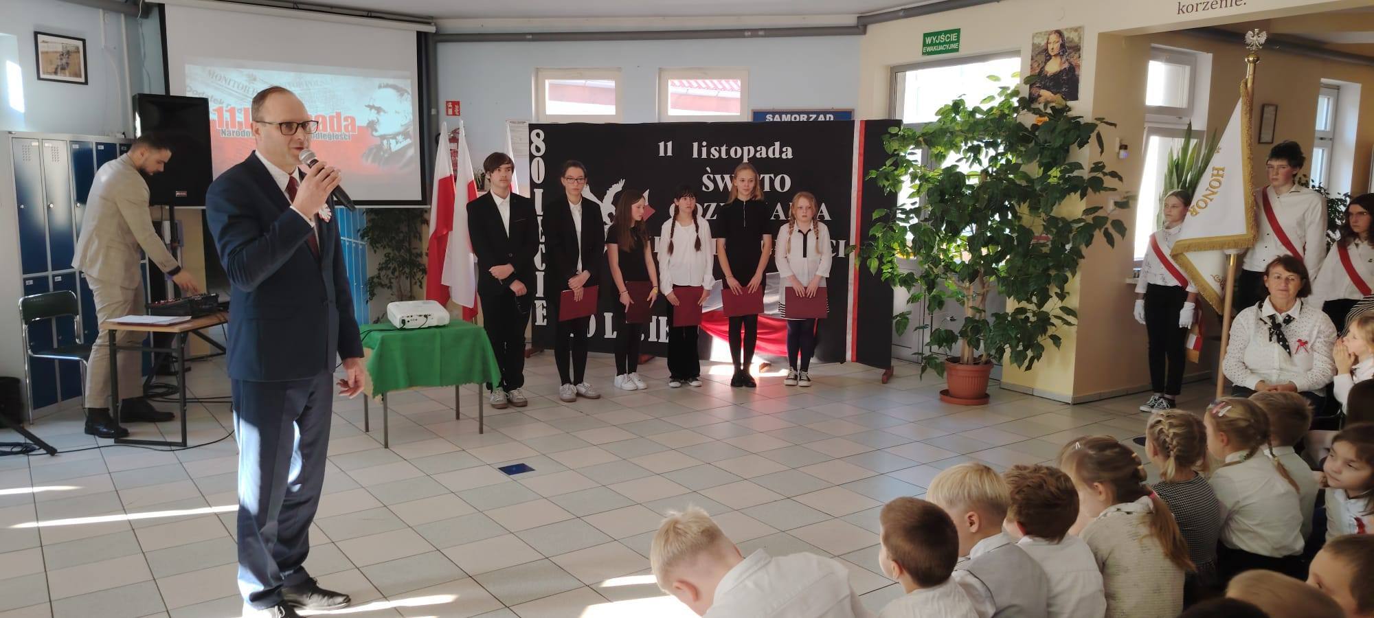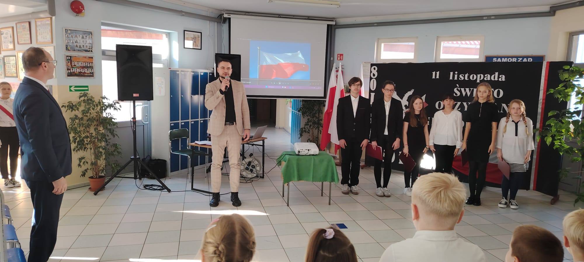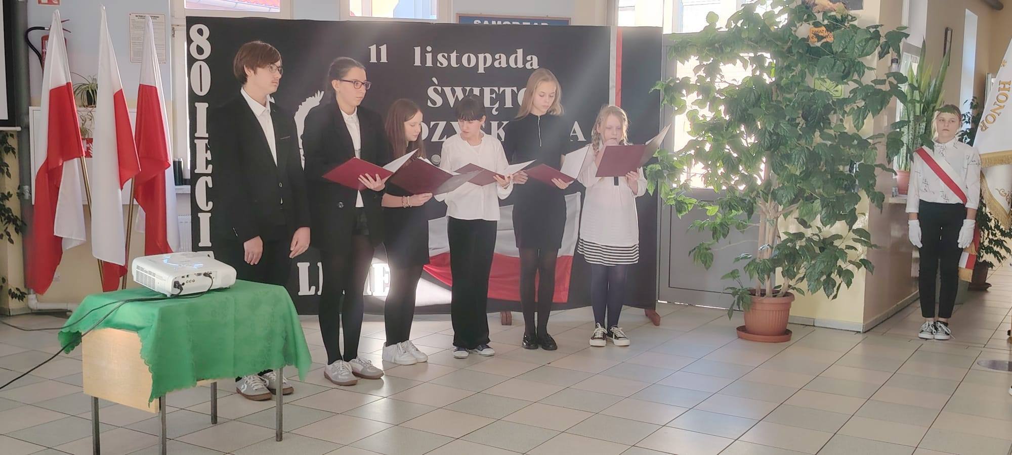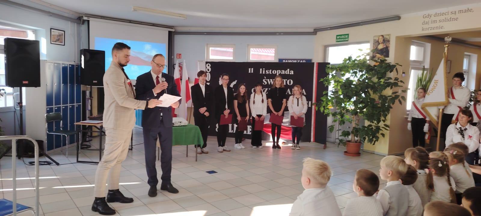 Podczas uroczystości uczniowie w piękny sposób przypomnieli historię drogi Polski do niepodległości. Występy klas II, III i IV oraz Oddziału Przedszkolnego przeplatane były odczytami, wierszami i piosenkami patriotycznymi, które poruszyły serca wszystkich obecnych, dzięki zaangażowaniu uczniów z klas V, VI, VII i VIII