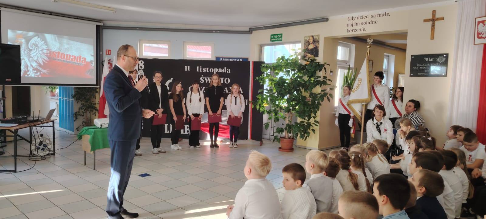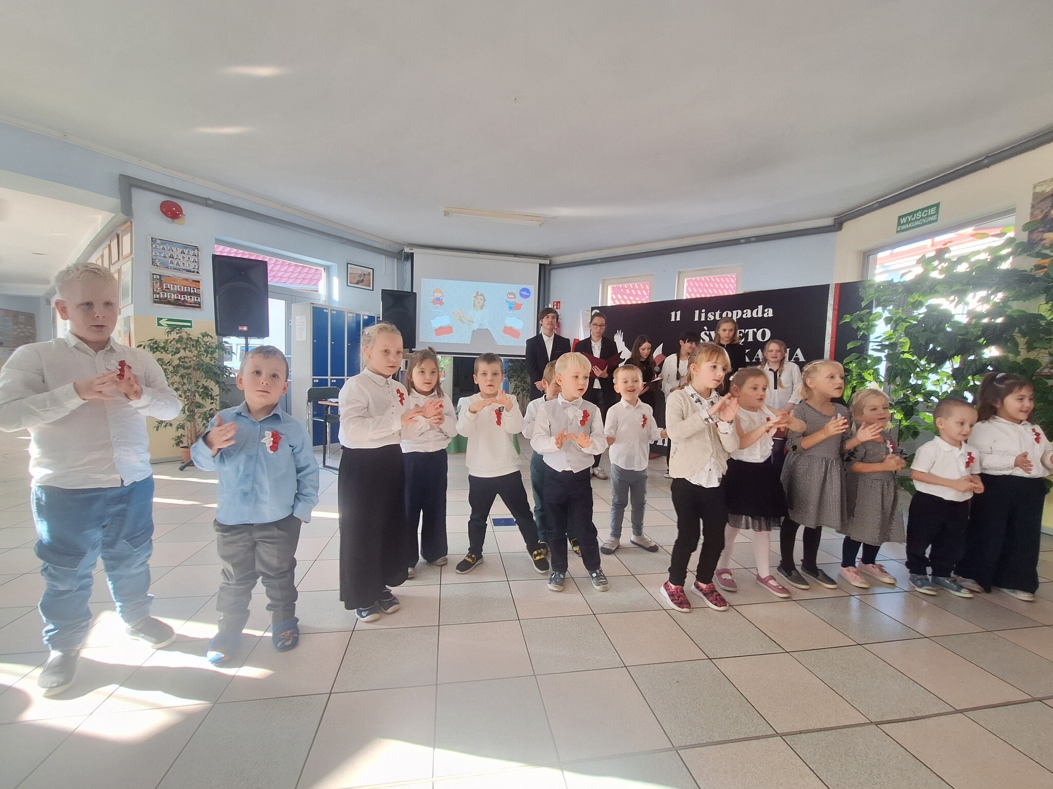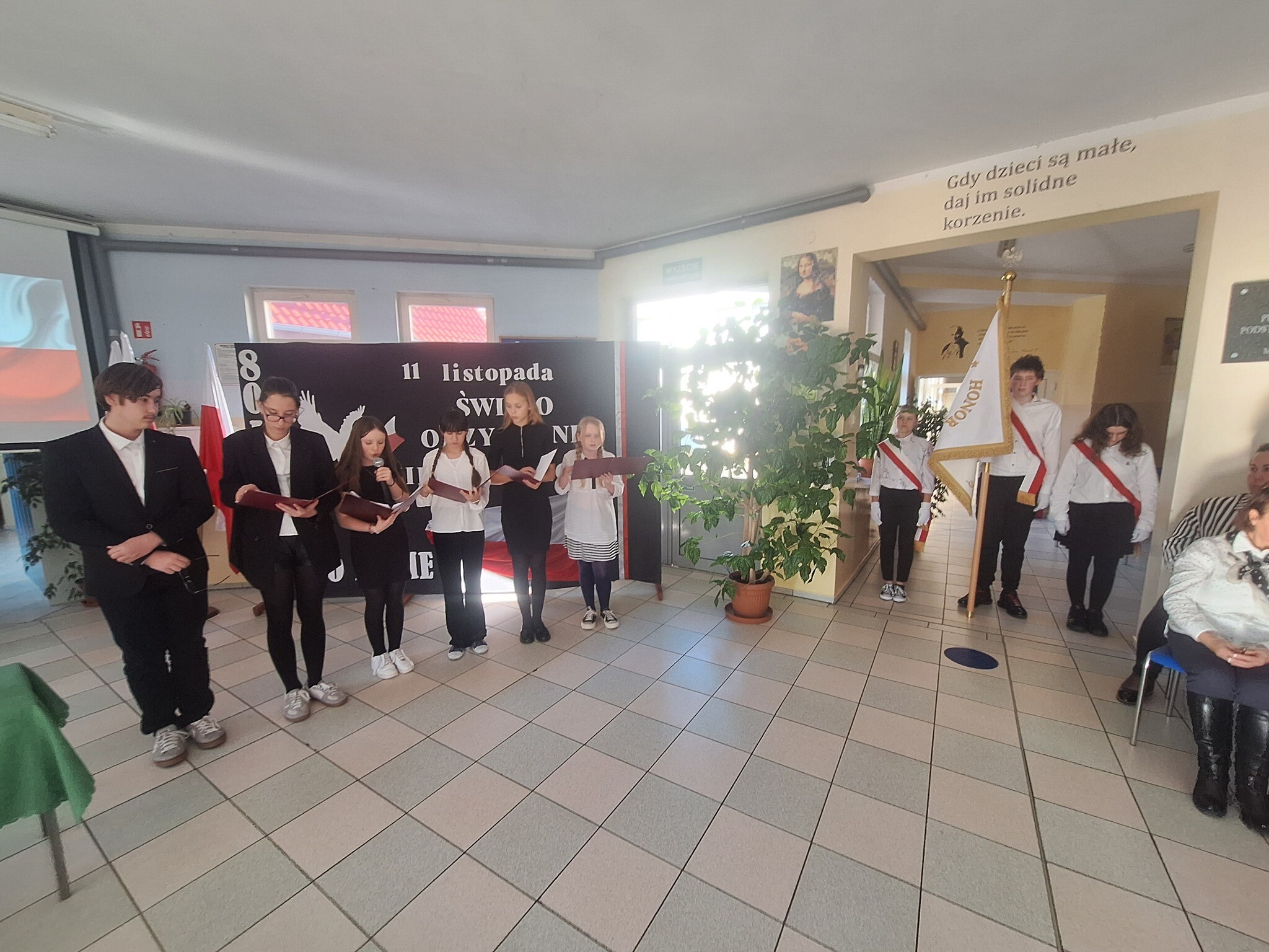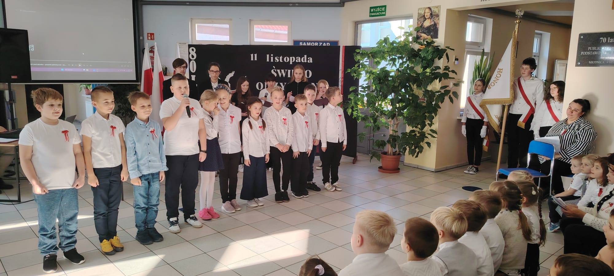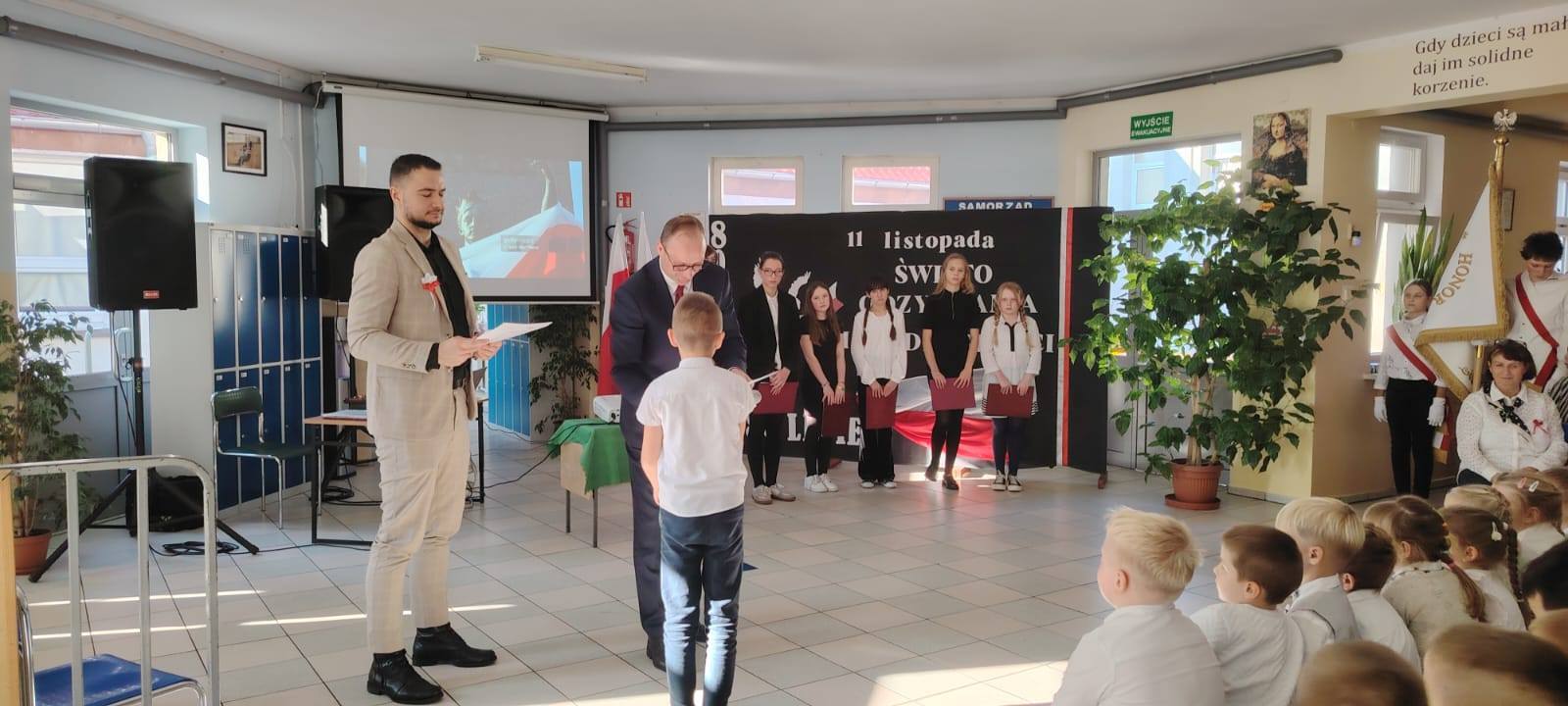 Podczas uroczystości uczniowie w piękny sposób przypomnieli historię drogi Polski do niepodległości. Występy klas II, III i IV oraz Oddziału Przedszkolnego przeplatane były odczytami, wierszami i piosenkami patriotycznymi, które poruszyły serca wszystkich obecnych, dzięki zaangażowaniu uczniów z klas V, VI, VII i VIII