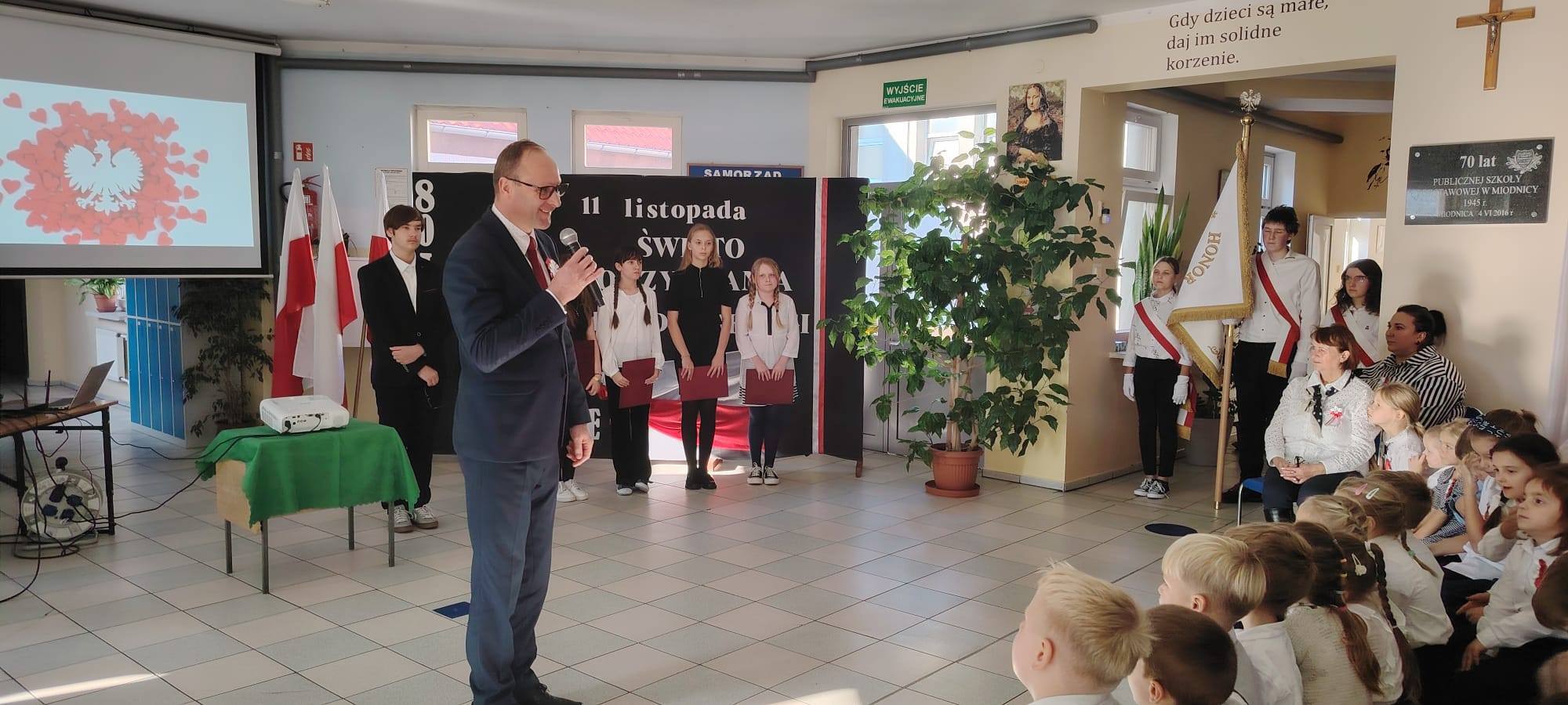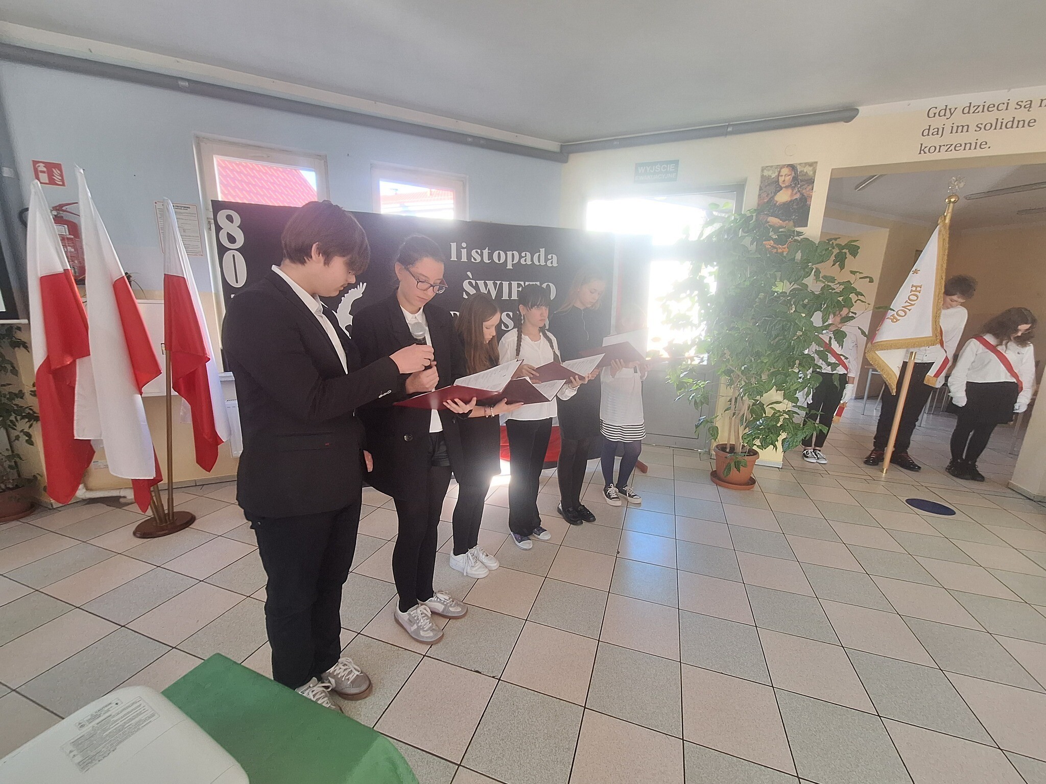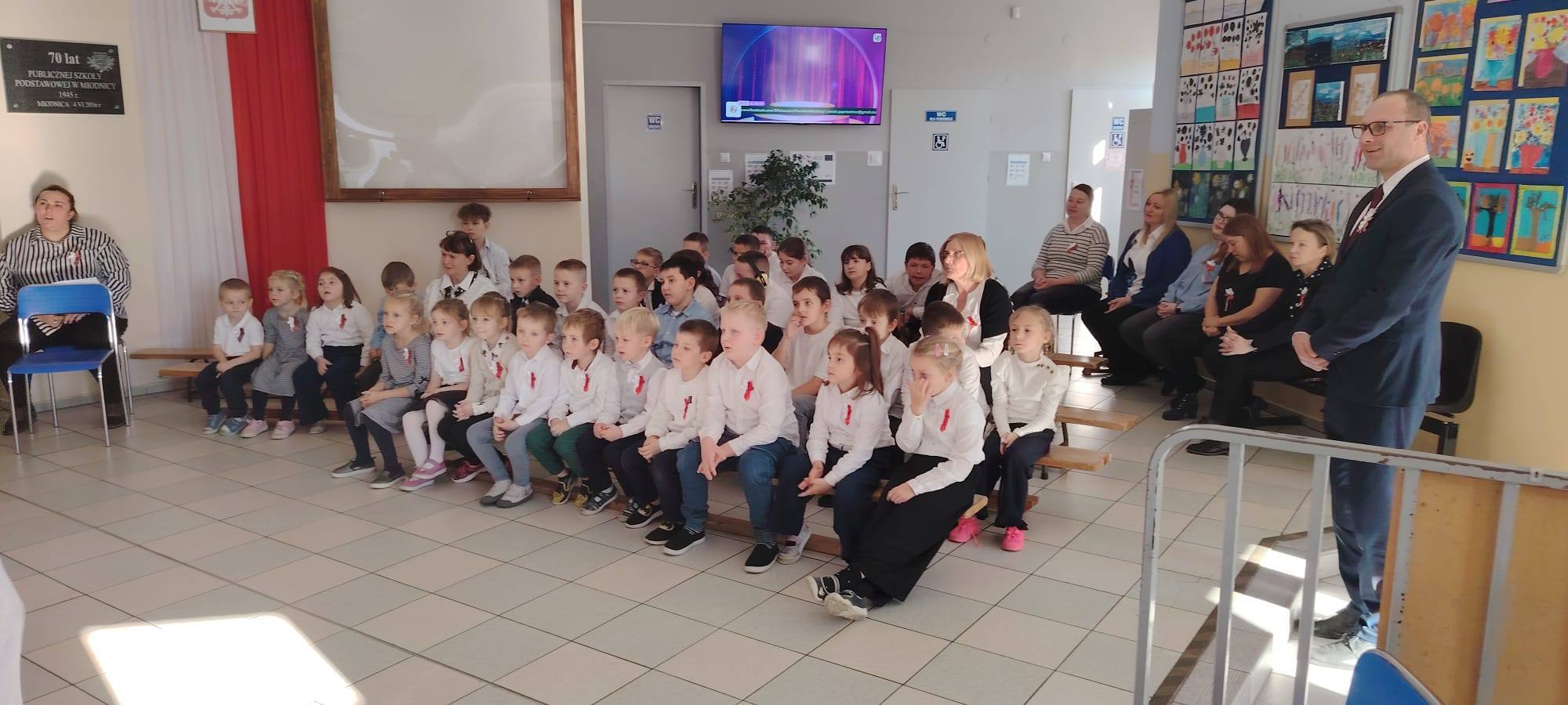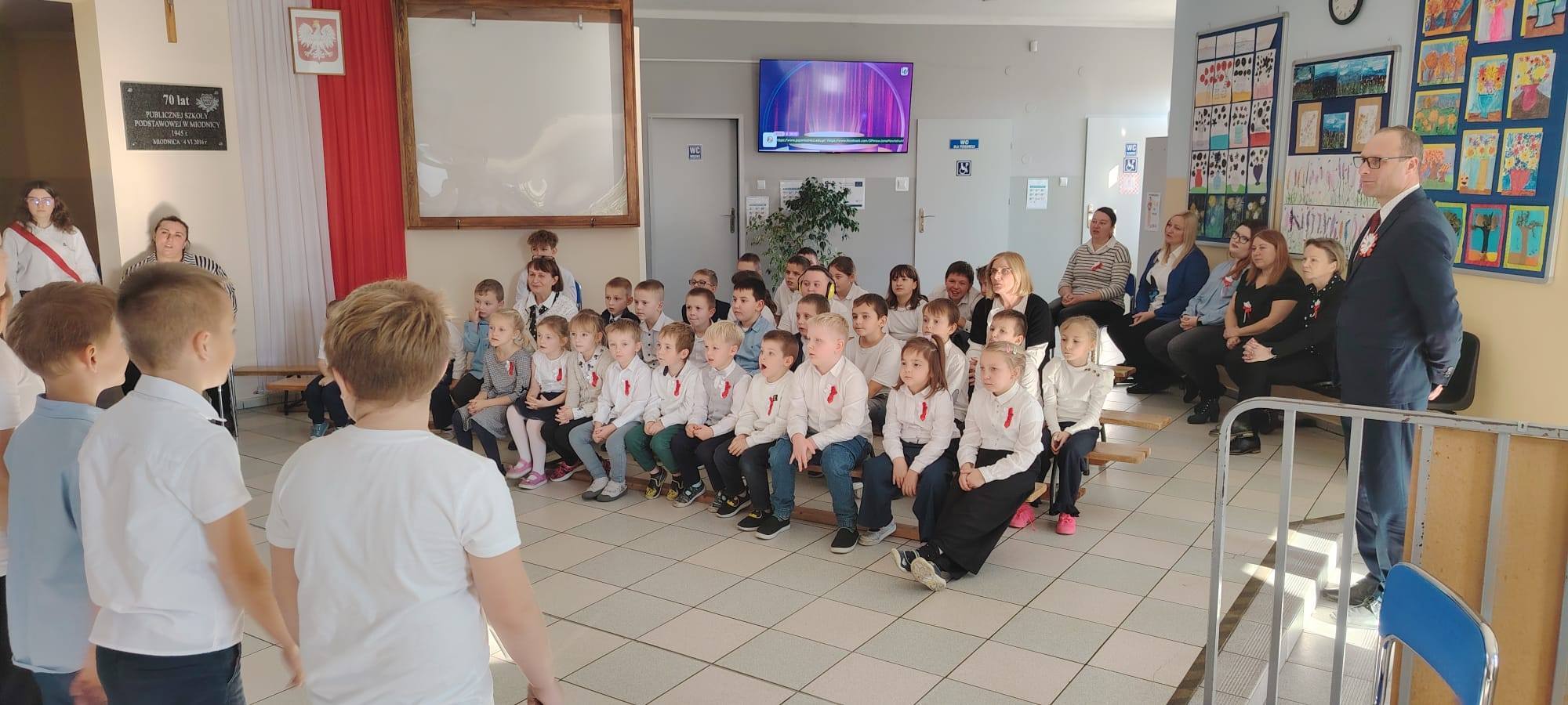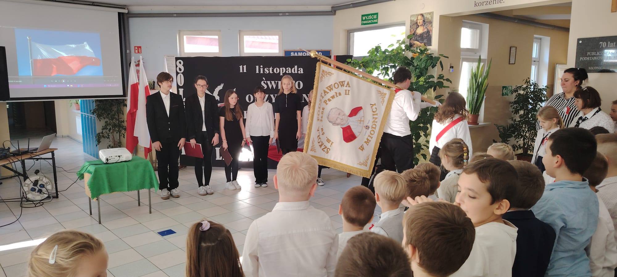 Podczas uroczystości uczniowie w piękny sposób przypomnieli historię drogi Polski do niepodległości. Występy klas II, III i IV oraz Oddziału Przedszkolnego przeplatane były odczytami, wierszami i piosenkami patriotycznymi, które poruszyły serca wszystkich obecnych, dzięki zaangażowaniu uczniów z klas V, VI, VII i VIII