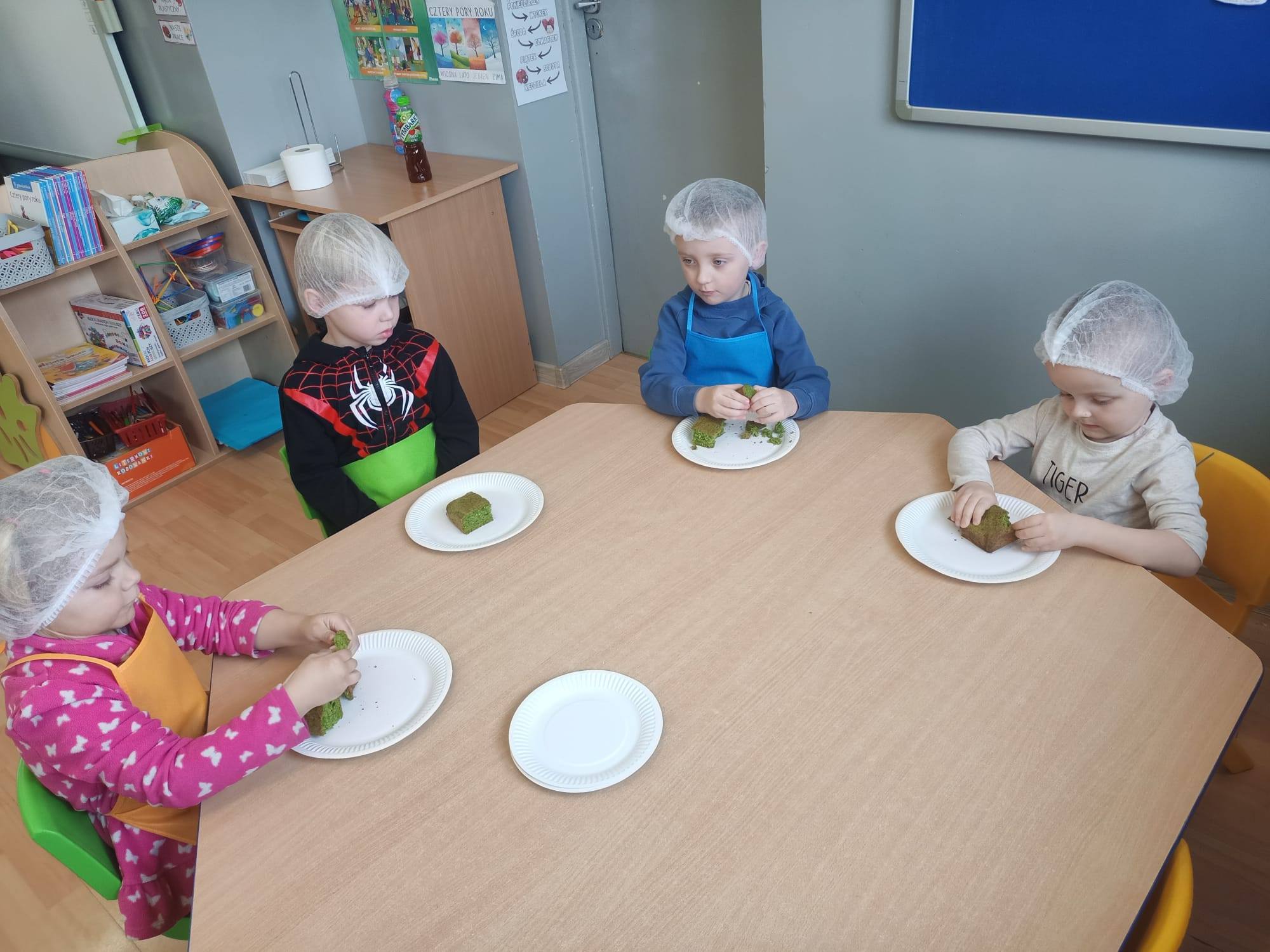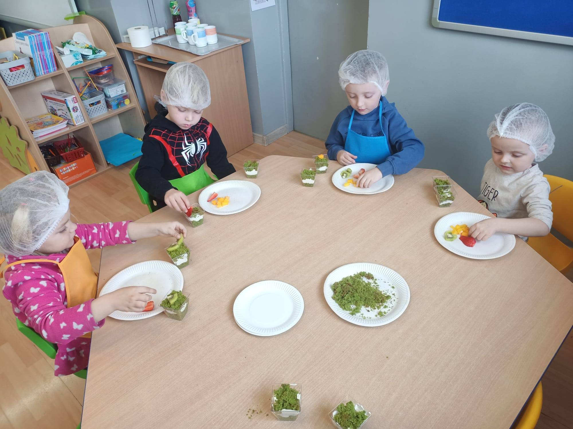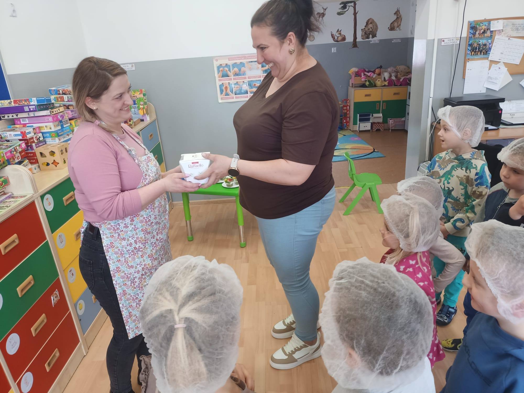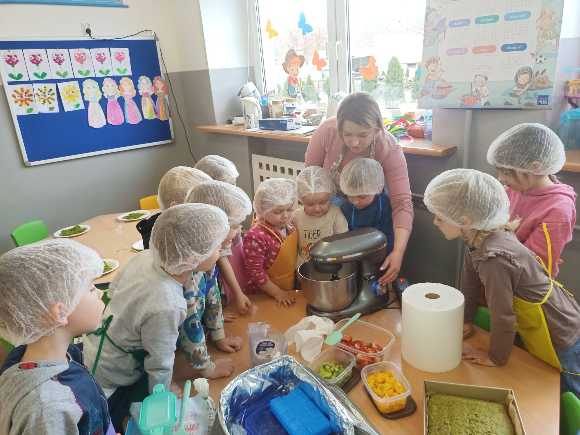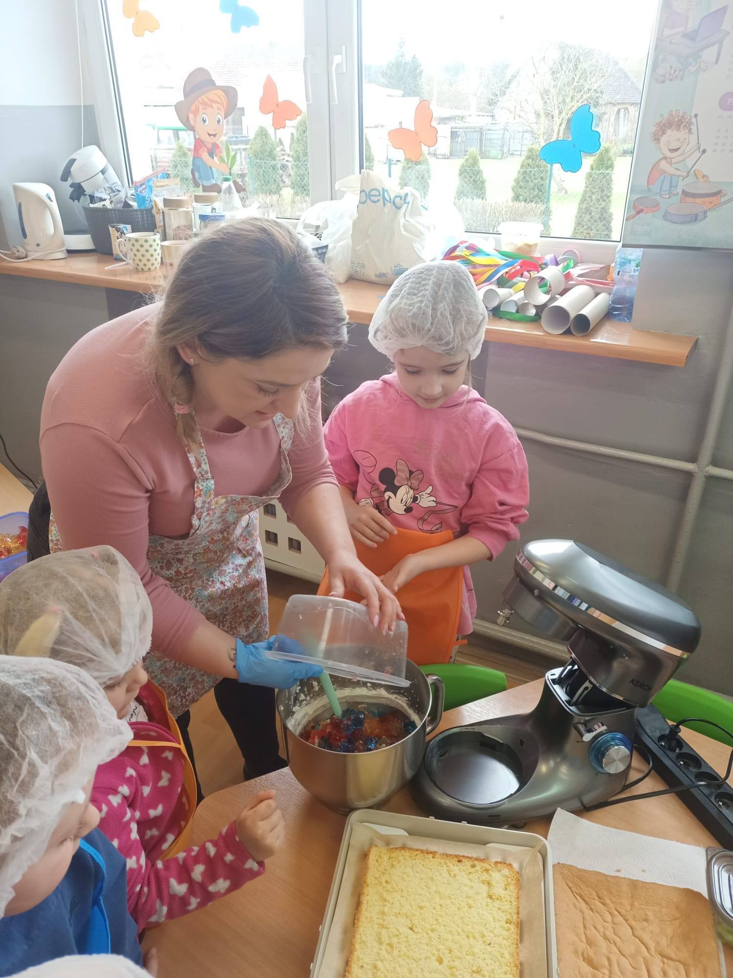 Warsztaty cukiernicze zostały przeprowadzone przez mamę jednego z przedszkolaków, która z pasją opowiedziała dzieciom o swojej miłości do pieczenia. Spotkanie było doskonałą okazją do integracji oraz poznania zawodu i zainteresowań rodziców