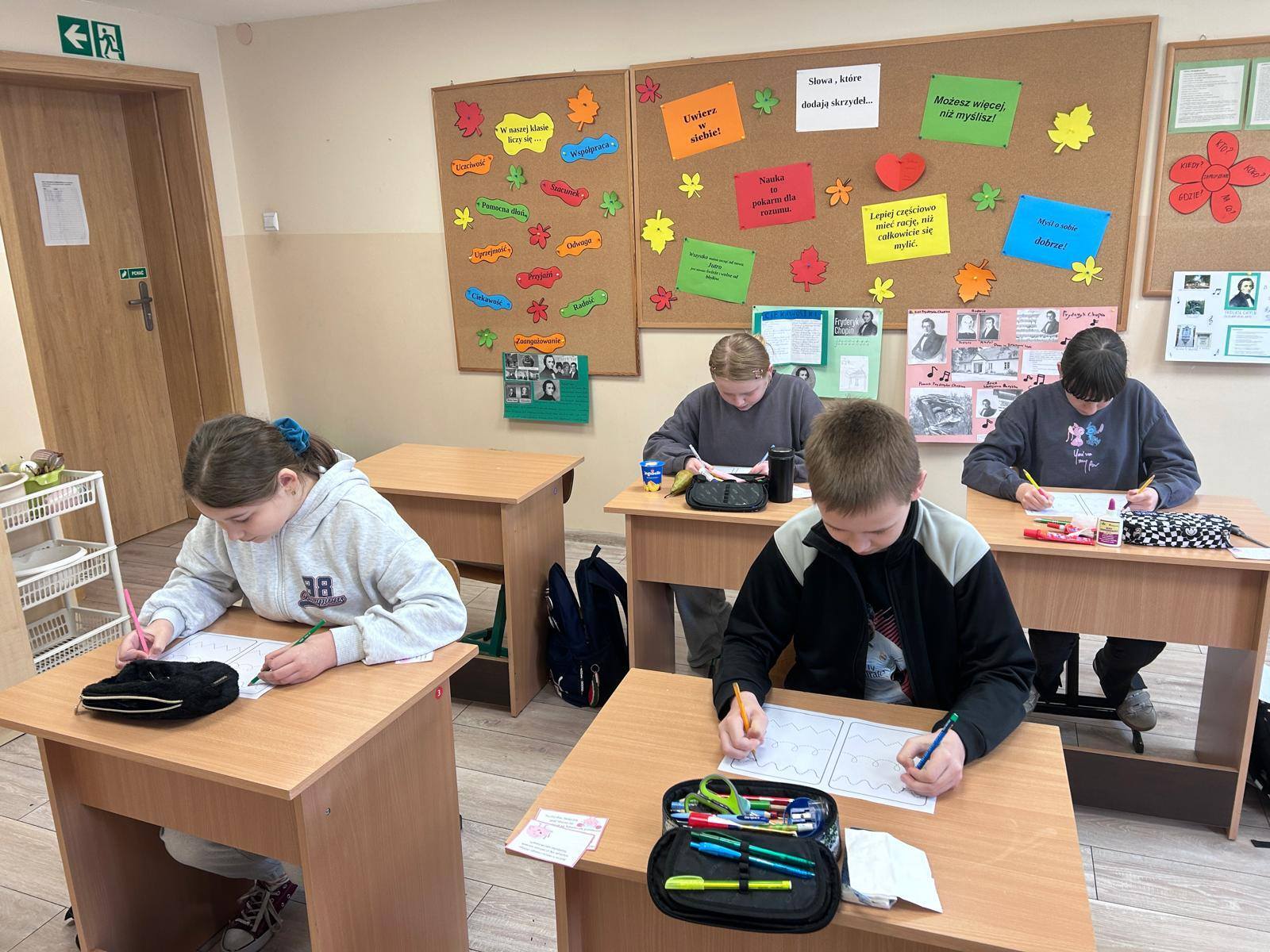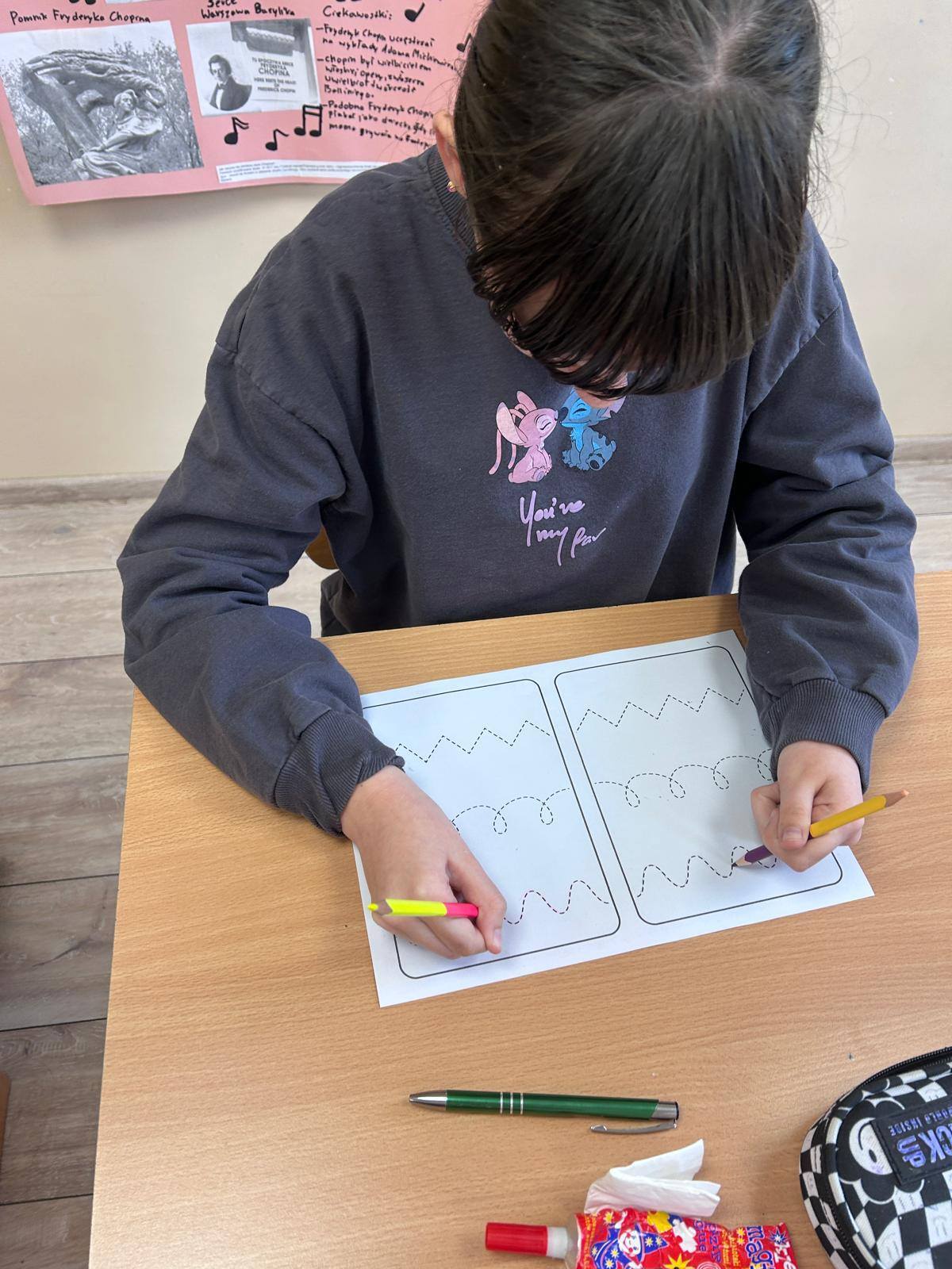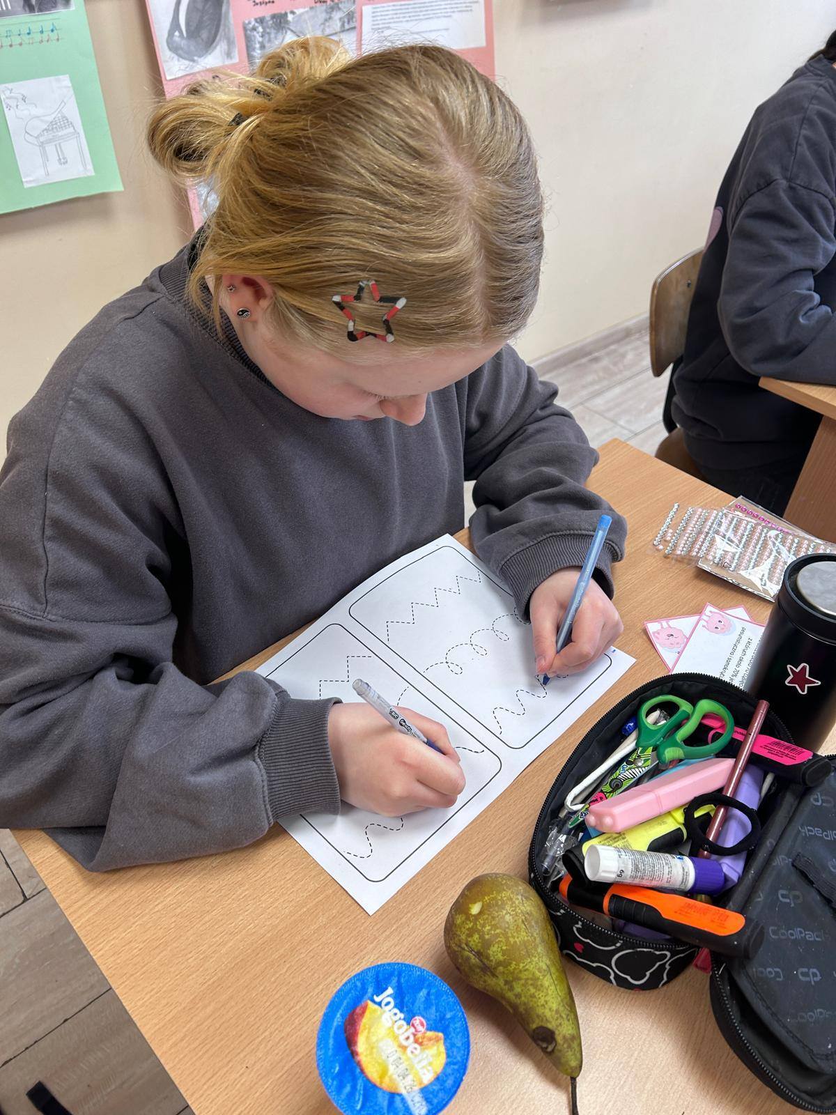 Nie zabrakło także praktyki! Dzieci wykonały różnorodne ćwiczenia z zakresu gimnastyki mózgu – zarówno te zabawne, jak i takie, które aktywują jednocześnie pracę obu półkul.