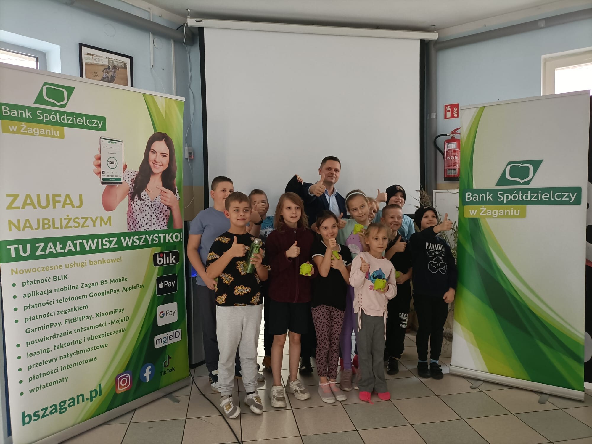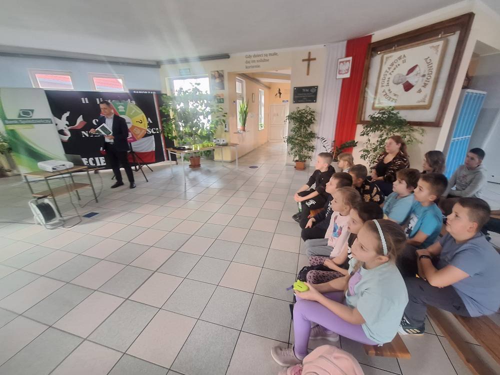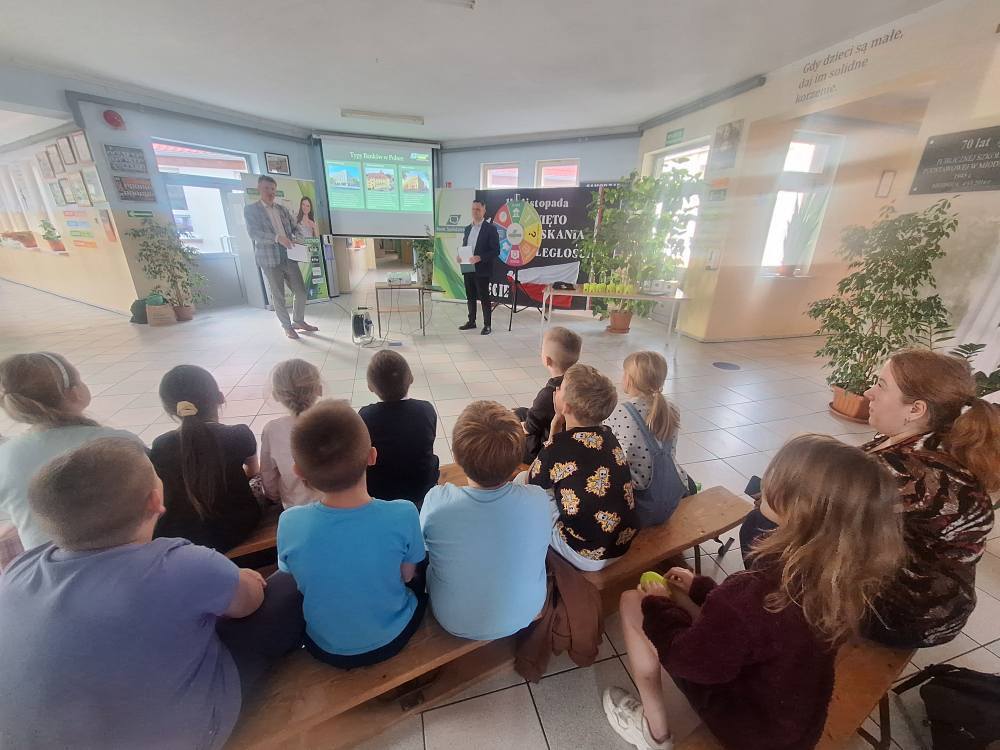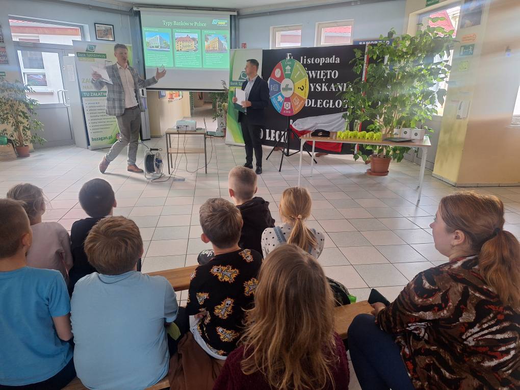 Dzieci z ogromnym zainteresowaniem zadawały i odpowiadały na pytania oraz aktywnie uczestniczyły w zajęciach. Spotkanie było świetną okazją, by poszerzyć horyzonty i zachęcić uczniów do przemyślenia swojej przyszłej ścieżki zawodowej. Serdecznie dziękujemy Bankowi Spółdzielczemu w Żaganiu za poświęcony czas, zaangażowanie i inspirujące spotkanie