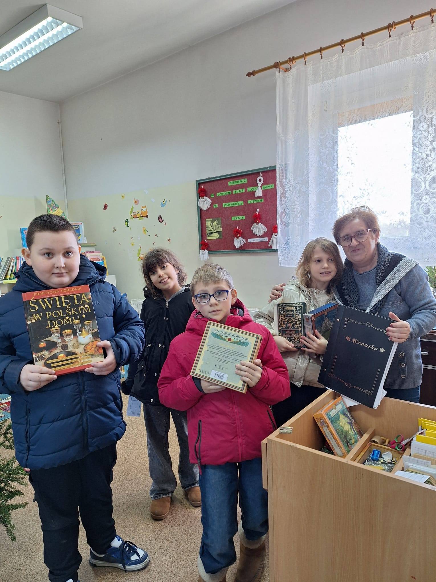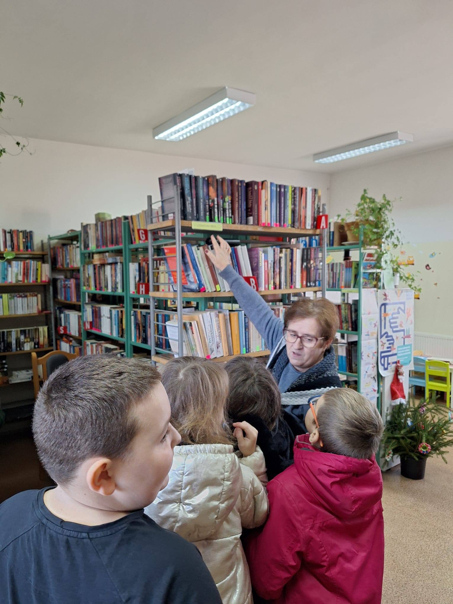 3 grudnia uczniowie klasy czwartej pod opieką pani Doroty Dobias i pani Joanny Makać, odwiedzili Gminną Bibliotekę w Miodnicy. Pani bibliotekarka Elżbieta Kucharz w niezwykle ciekawy sposób opowiedziała dzieciom o historii powstania biblioteki oraz o codziennej pracy bibliotekarza. Uczniowie dowiedzieli się również, jak wygląda „droga książki” – od momentu zakupu aż po trafienie na półkę i późniejsze wypożyczenie.
