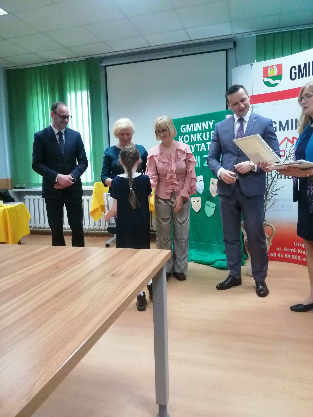 Leszek Ochrymczuk - Wójt Gminy Żagań - konkursie udało wyłonić się dziś nominatów do etapu powiatowego, a mianowicie w grupie I (klasy I-III) są to: Nina Kipa (PSP Miodnica), Natalia Cacek (PSP Tomaszowo), Cyprian Cybulski (PSP Tomaszowo); w grupie II (klasy IV-VI): Alicja Grażewicz (Niepubliczna Szkoła Podstawowa "Mała Szkoła"), Eryk Stefański (PSP Tomaszowo), Maciej Ochrymczuk (PSP Miodnica) oraz w grupie III (klasy VII-VIII): Aleksandra Krakowska (PSP Tomaszowo), Julia Janicka (PSP Miodnica) i Lena Sowińska (PSP Miodnica). Doprawdy gromkie brawa i gratulacje należą się wyłonionym laureatom-nominatom do Powiatowego Konkursu Recytatorskiego!