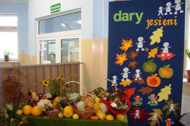 Jak co roku przygotowaliśmy wystawę jesienną pod hasłem "Dary jesieni". Przyniesione przez uczniów pełne kosze i koszyki owoców, warzyw, kwiatów i liści udekorowały korytarz szkolny. Podczas trwania wystawy uczniowie chętnie oglądali przyniesione okazy, które posłużyły również do przeprowadzenia zajęć edukacyjnych.