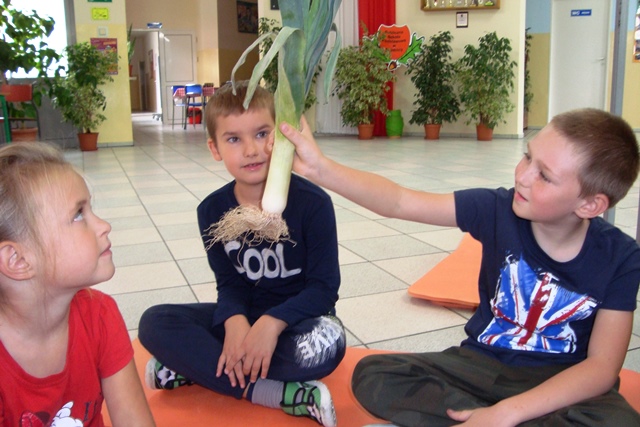Następnego dnia wystawa posłużyła do zapoznania uczniów ze zgromadzonymi warzywami. Zabawa "Znawca warzyw" pozwoliła na poznanie warzyw różnymi zmysłami. Następna zabawa "Czy mnie znasz?" utrwalała nazwy warzyw.